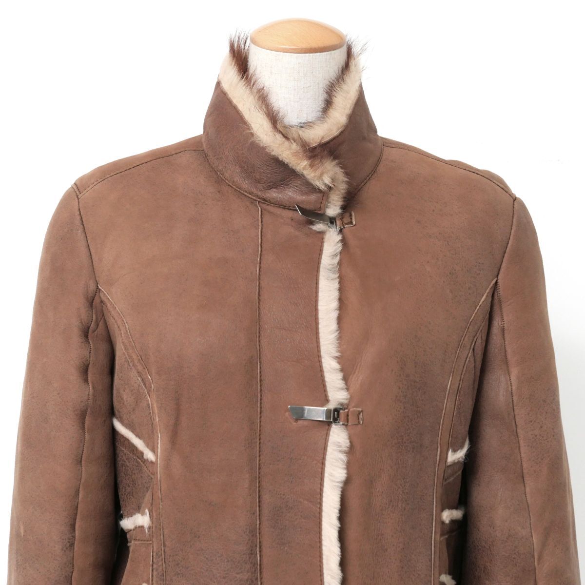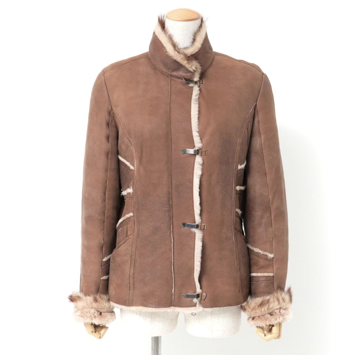 | GS0866▽スポーツマックスコード/SPORTMAX CODE リアルムートンジャケット ジップアップ レザーブルゾン 羊革 毛皮 サイズJI40 ブラウン系 | |||