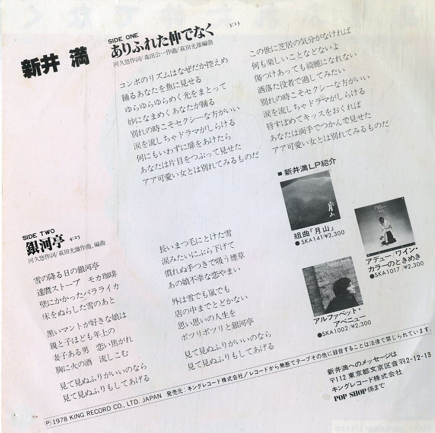 C00202233/EP1枚組/新井満「ありふれた仲でなく / 銀河亭 (1978年・GK-8041・森田公一・萩田光雄作曲)」 [浏览原始页面]