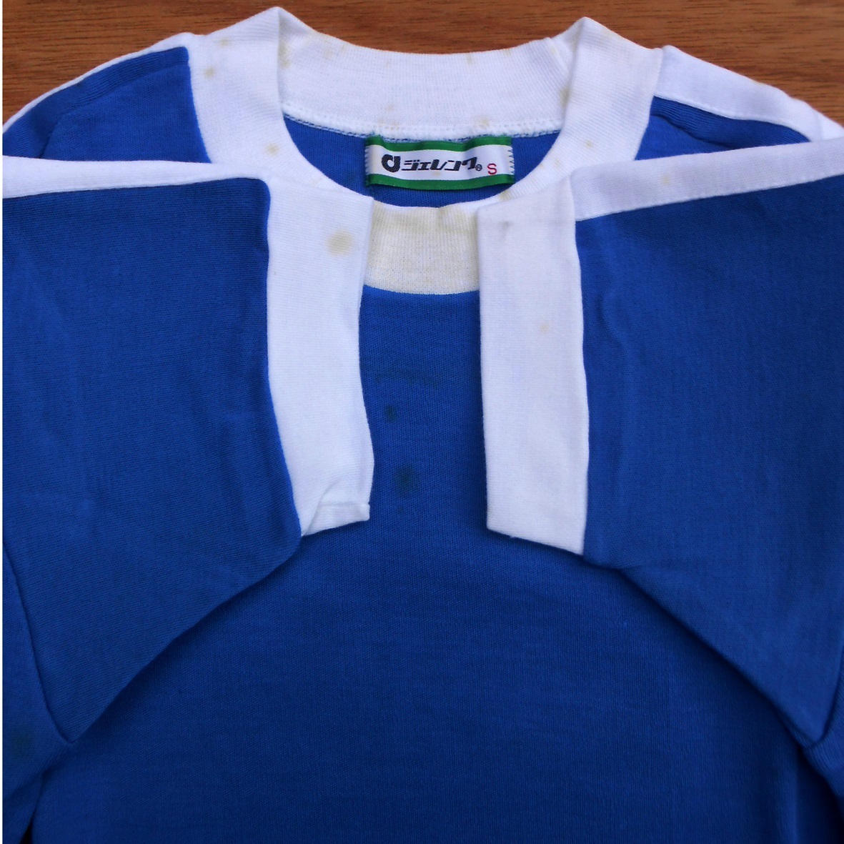 | 商品説明 | ’70s Jelenk ( ジェレンク 株式会社 ) 半袖 Tシャツ MADE IN JAPAN ( 日本製 ) 『 エステル混スポーツウエアストレッチシャツ生地 ( 通常スポーツウエアシャツオンス ) 、切り替え配色デザイン、ラグランスリーブ 等 』 サイズ表示 【 S 】 ( 下記の実寸サイズを参考にして頂ければ幸いです ) 品質表示 【 ポリエステル 30% ポリノジック 70% 】 【 実寸サイズ ( 約 & 素人寸法ですが ) 】 身幅 : 40cm ( ストレッチ生地の為、少し伸びます ) 着丈 : 60cm ( バックセンター ) 袖丈 : 11.5cm ( 脇から ) 【 カラー 】 ブルー × ホワイト 【 コンディション 】 未使用 ( デッドストック ) です。 各画像どおり、ストック時のシミ汚れの点在感を確認できます。 宜しくどうぞお願い致します。 |