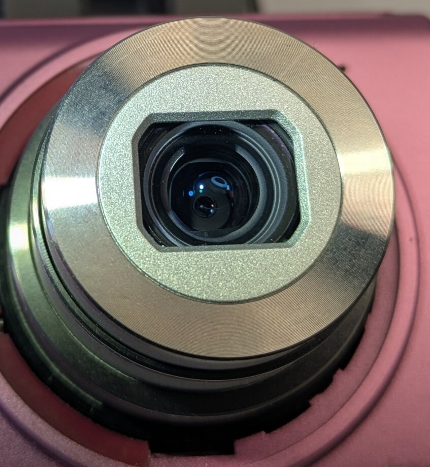 このカメラに多い、レンズ回りの装飾部品が取れてしまっています。動作への影響はありません。