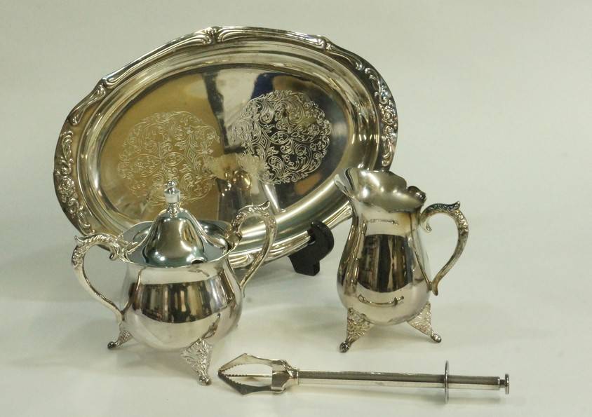 主に紅茶やコーヒーをお出しする際に添えられる銀メッキのテーブルウェア4点セットです。