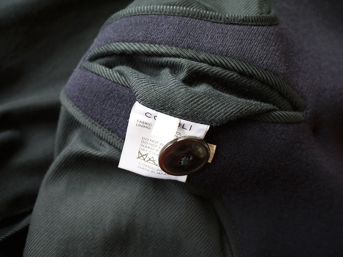 brand COMOLI made in japan price \132,000(参考上代) material wool 100% color Navy サイズ 2(M) 肩幅49(ラグランスリーブのため概算) 着丈85 袖丈63 身幅55 (多少の誤差はご了承ください) 状態 使用感の少ないきれいなお品物です。ボタンフープにほつれが見られますがその他ダメージは見受けられず末永くご使用頂ける状態です。 |