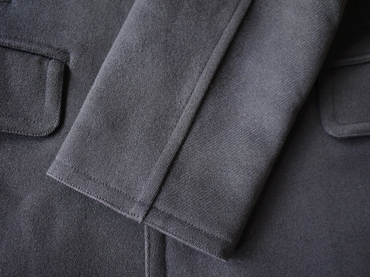 、肉厚できめ細やかな質感のメルトンウールはふんわりと柔らかく、彩度を抑えたネイビーカラーが洗練された印象をより際立たせる一見して品質の良さを感じさせる上質なファブリックでございます。 現代のトレンドにマッチしたシルエットとサイズ感で、これから先末長くご使用いただける逸品となります。毎年非常に人気のアイテムでございますので、この機会にぜひよろしくお願いいたします。