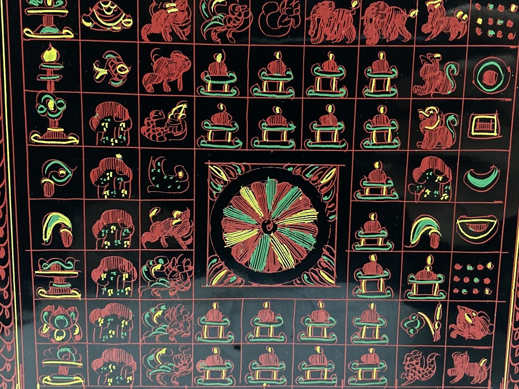 仏足図 漆芸 お釈迦様の足跡 曼荼羅 ボード 約22.2cm×32.8cm 現状品