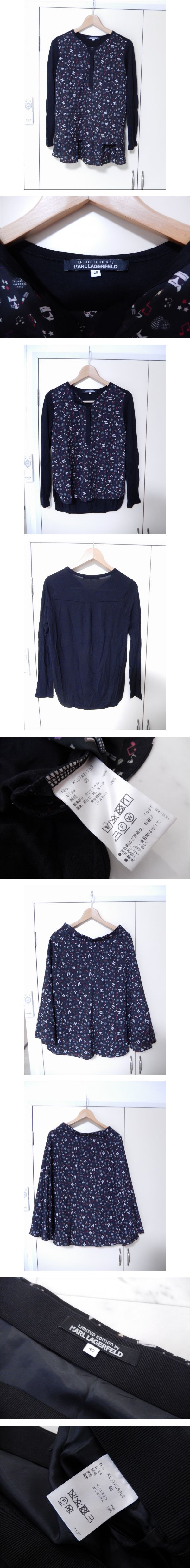 | 【管KO0823】2500円~ 美品 KARL LEGERFELD カールラガーフェルド 総柄 セットアップ 上下 長袖トップス フレアスカート 上下セット 黒 | ||