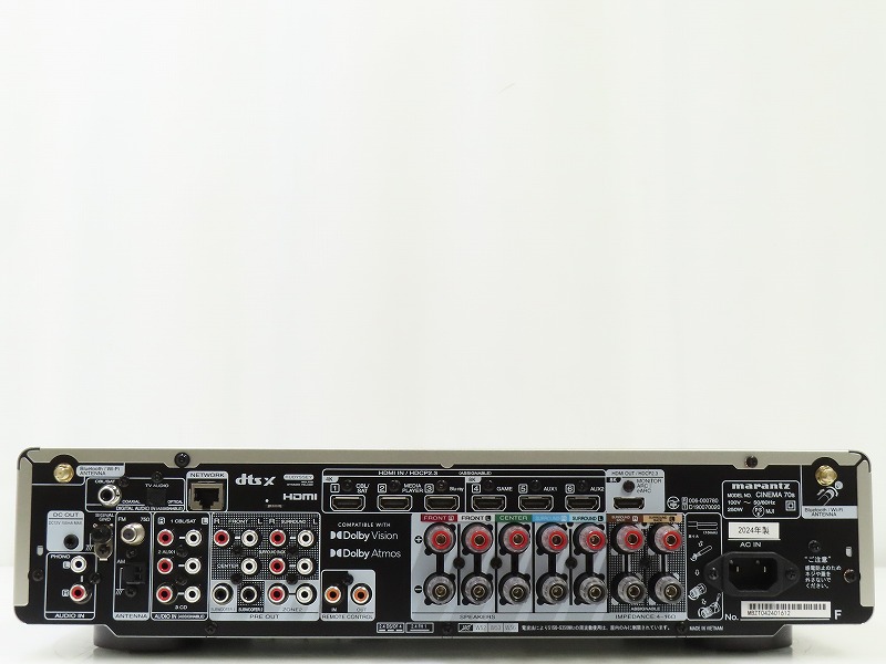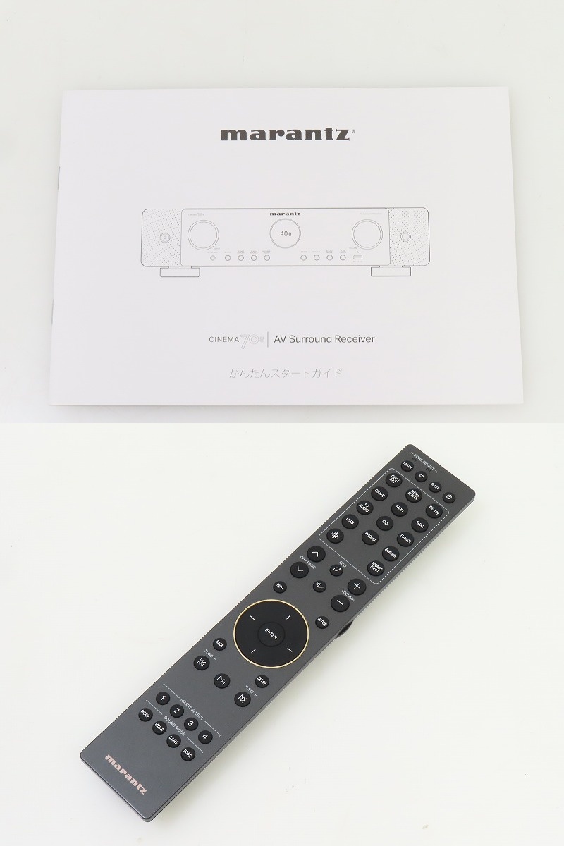 ■メーカー : marantz ■型番 : CINEMA 70S ■外径寸法 : W442×H109×D384mm ■重量 : 8.7kg 【商品の状態 当店での確認内容】 基本動作確認済み 「商品の状態」に関しましては当方主観の目安となります。外観などは中古品で個人差もありますので詳細は画像にてご判断ください。 画像にて不明な点はご質問下さい。 出品商品は画像のものですべてになります。画像に写っているもの以外は付属いたしません。 ※注意※ のシステム上、送料表記が送料未定となっておりますが、送料に関しては全て有償となりますので下記を参照下さい。 【送料 全国一律 2,080 円 沖縄、離島は別途お見積り】 ※送料がお得になるサービスです(下取りシステムのご案内です) ストア決済利用時にクレジットカードやPayPay残高/PayPayクレジットを利用の方は留意点がございますのでこちらを参照上ご利用ください。 当ストアでは商品を安全にお届け出来るよう提携運送会社と協議の上、発泡緩衝材や強度段ボールの使用等 運送会社が指定する梱包方法や資材を採用しております。 より安全にお届け出来るよう商品仕様により梱包サイズが大きくなる場合や個口数が増える事がございます。 【当ストアオークションルールを入札前に必ずご確認ください。】 【落札後の取引手順】 ・落札後は取引ナビにて、必要事項をご入力後、送信ください。 取引終了後48時間(土、日は除く)以内に入力をお願い致します。 ※ご連絡が頂けない場合は落札者様都合でのキャンセルとさせていただきます。 ・落札代金(商品代金+消費税+送料)の入金をお願い致します。 ※大型商品の場合は送料確定後の決済となる為取引ナビを入力頂き、当ストアより送料のご案内が来るまでお待ちください。(土曜、日曜、祝日の場合は翌営業日より順次ご案内いたします) ・お支払い方法はクレジットカード/PayPay残高/PayPayクレジット/PayPay銀行/ゆうちょ銀行のみです。 ※商品代金引換(代引き)のお取り扱いはしておりません。 ※領収証の発行が必要な方はご連絡ください。 ※銀行振込の際の振込手数料はご負担願います。 ・入金確認後に出荷手配を致します。 (原則入金確認後3営業日以内に発送いたしますが、大型や重量のある製品はお時間をいただく場合もございます。) ・発送は当店指定の運送会社の元払いのみでの発送となります。 ※他の運送会社、送料代引き等は致しかねます。 ※落札者様ご自身での運送会社の手配いただく事も可能ですが荷物事故の責任の所在の問題上、梱包は致しかねます。 ※店頭にお越し頂き手渡しも可能(福岡市早良区)です。ご希望の方はご落札後にご連絡下さい。 ・大型/重量物商品の送料につきましては商品の特性上、荷降ろし状況等により送料が大きく前後し運送業者に別途見積りが必要な為、早めのお問い合わせにてお見積り上、入札をお願い致します。 【初期不良の保証について】 ・商品到着後の初期動作不良、また配送中の事故による破損、不具合が有る場合は、商品発送後10日以内に当ストアまでご連絡ください。当ストアでは修理での対応を優先させて頂きますが、修理不可の場合は全額返金させて頂きます。 (商品代金+消費税+送料のお支払い頂いた金額となります) 【初期不良の保証の対象外について】 次の場合は保証の対象外となりますのご留意ください ・ジャンク商品、現状商品、難あり商品での出品商品。 ※難あり商品に関しましては動作確認時に一部動作不良が確認された商品になり、記載している動作確認以外にも、動作不良がある可能性もございます。こちらに関しましても保証対象外となりますことをご理解ください。 ・年代物のオーディオなどで、当店にてわからない範囲で部品が交換されている場合 ・楽器類の特殊機材(マイクロスコープ等)での確認までは行っておりません。気になる方は事前にご質問いただくか、入札をお控えください。 ※初期不良に関しましては【商品の状態】に記載のもの、またそれによって起因する動作不良は対象外です。 ※商品発送後10日を過ぎてのご連絡は対応が出来ませんので、商品が到着しましたらお早めに確認をお願い致します。 【メーカー保証の加入・継承】 ・未使用品、展示品やメーカー保証期間が残っている商品に関しまして、メーカー保証の加入、継承が必要な方は、落札後取引ナビ内にて当ストアにお知らせください。商品発送までにご連絡いただけない場合、メーカー保証の手続きを承れない場合があります。 【評価について】 ・評価不要の場合、必ず取引ナビの「要望欄」にてお知らせください。それ以外でご連絡をいただいた場合、対応できない可能性がございます。一度行った評価はシステム上取り消しが行えませんのでご了承ください。 【入札削除・キャンセルについて】 ・入札後はトラブル防止の為いかなる事情がおきましても入札を削除等は致しておりません。 ご検討の上入札をお願い致します。間違った際の入札額の金額訂正はご自身で行ってください。 