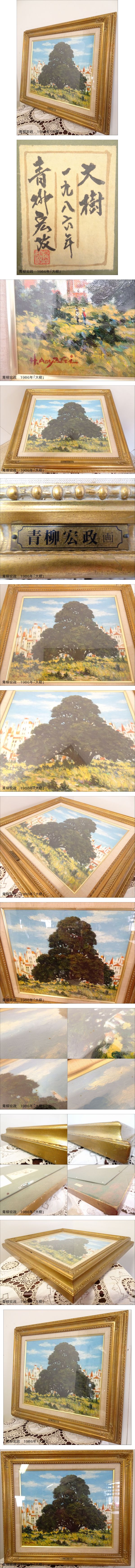 真作保証 青柳宏政 1986年「大樹」油彩 作品44.5×37cm 共シール 額装の出品です。