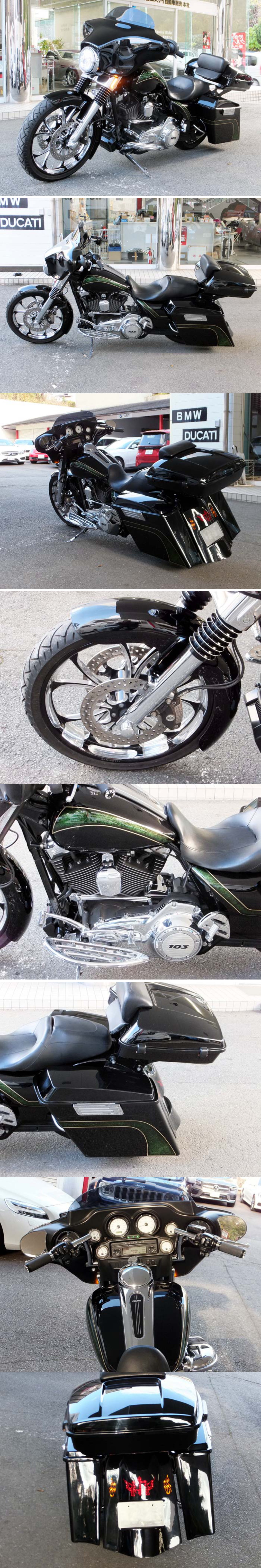 | CUSTOM詳細・・・・カスタムペイント外装、前後パフォーマンスマシンコントラストキャストホイール(フロント21インチ、リア18インチ)、前後パフォーマンスマシンコントラストブレーキローター、フロントフェンダー、クロームフォークスライダー、LEDヘッドライト、アレンネスフォークスライダーカバー&フットボード&リアブレーキレバー&シフターペダル&シフトリンケージ&パッセンジャーフットボード、ポールヤフィーマフラー、クリアキンエアークリーナー、リアエアーサスペンション、ローランドサンズハンドルバー、純正オプショングリップ、フロントLEDウインカー、リアフェンダーエクステェンション(ゴーストテールランプ&ゴーストウインカー)、サドルバック、レーザーツアーパック、アンコ抜きシート、ETC,