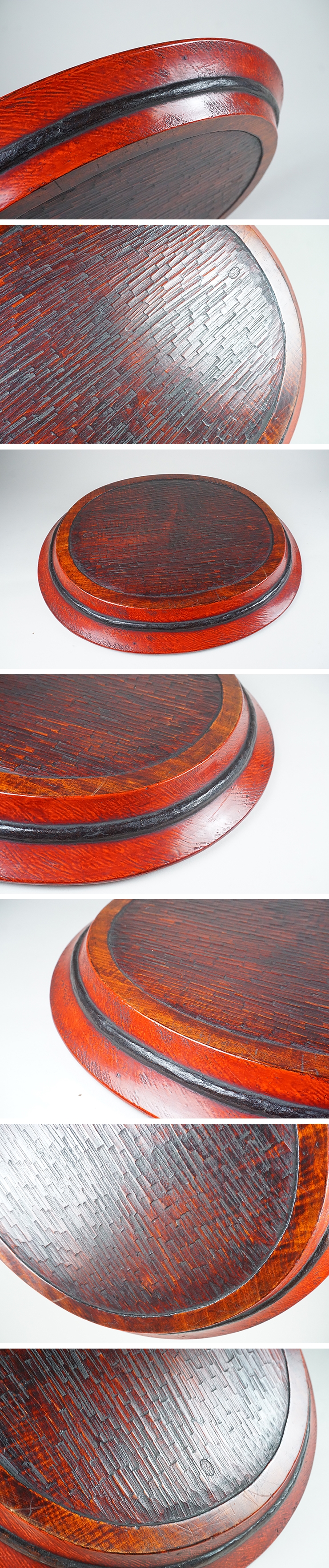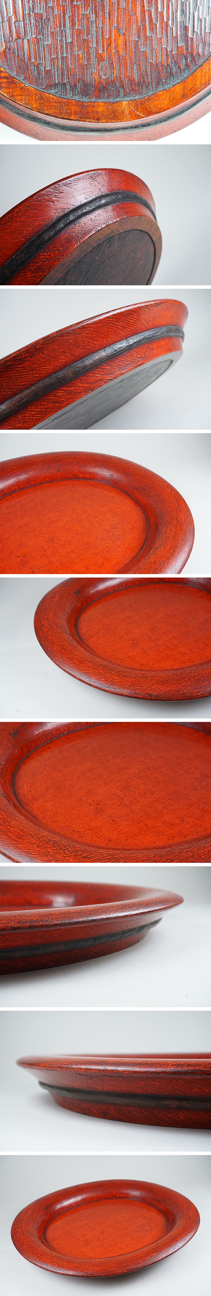 | 裏に銘あります。朱塗りに裏は木目のある美しい盆です。 肉厚でしっかりとしており、反り、曲がりありません。 わずかな擦れのみ、状態は良好です。画像ご参考の上ご入札ください。 高さ5.4cm 幅41.1×46.7cm 底裏径32.5×38.0cm | |||