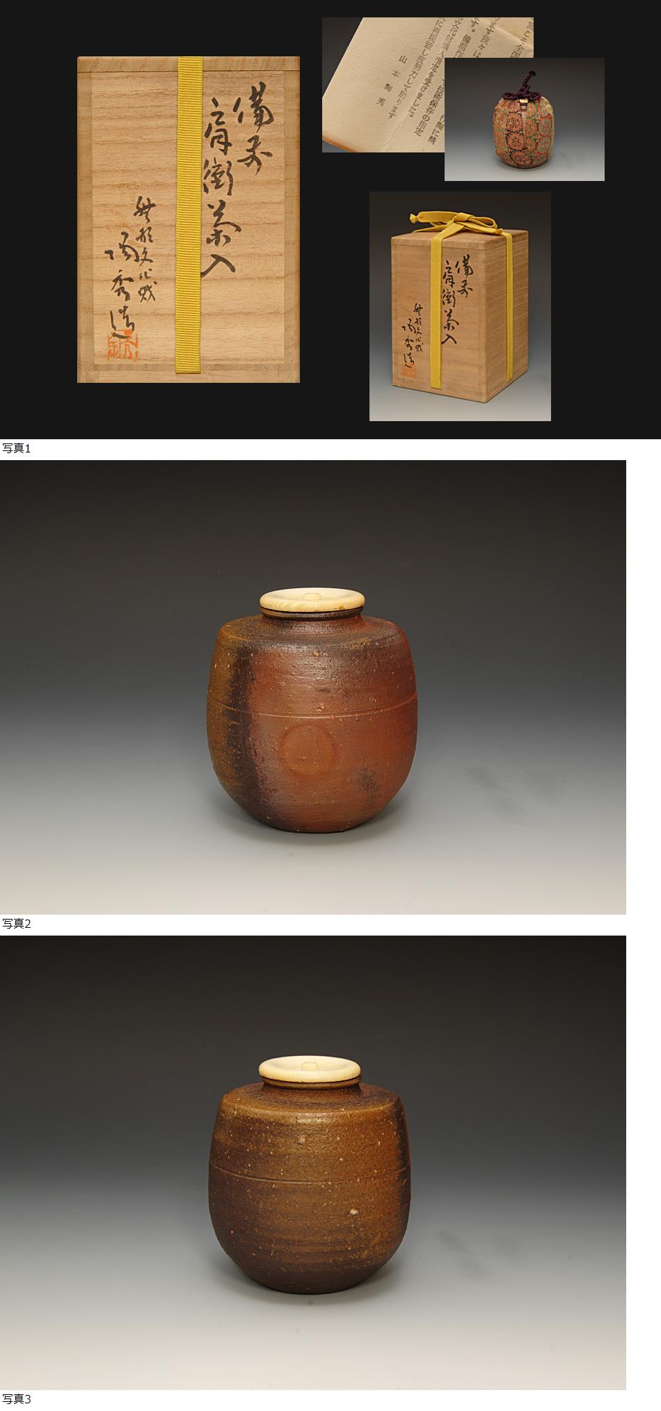 星庵厳選名品企画 人間国宝指定後作 山本陶秀 備前肩付衝茶入 共箱