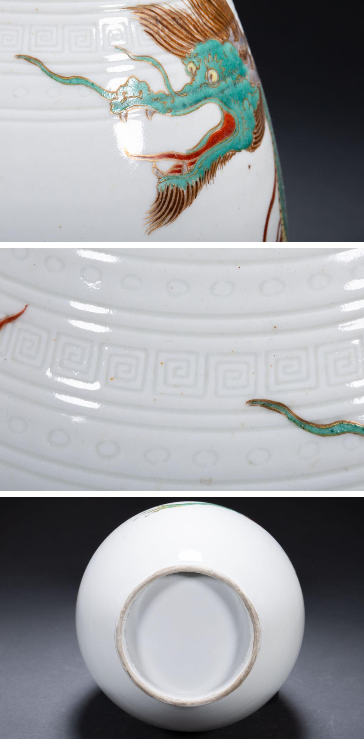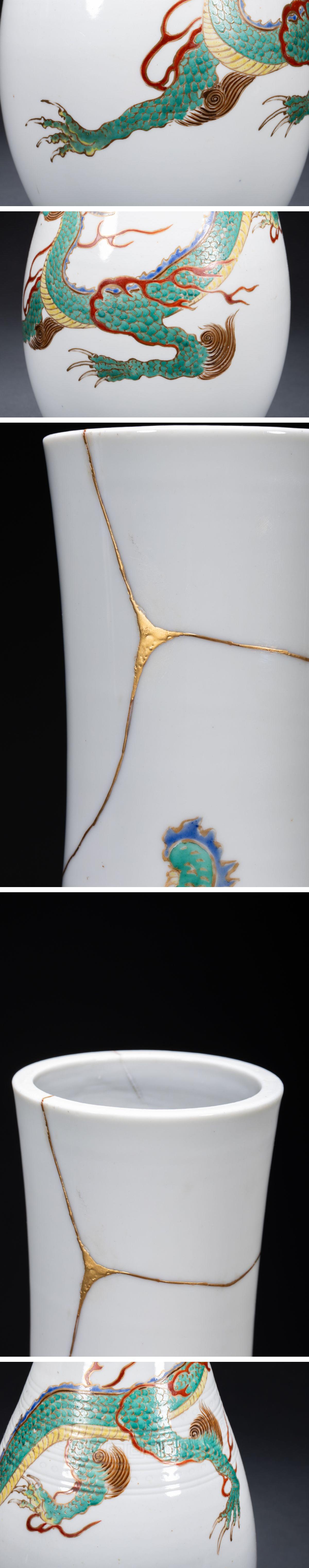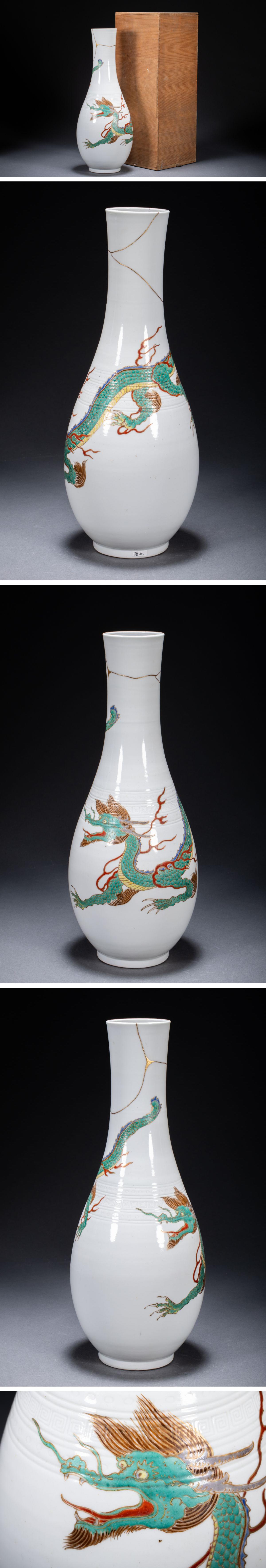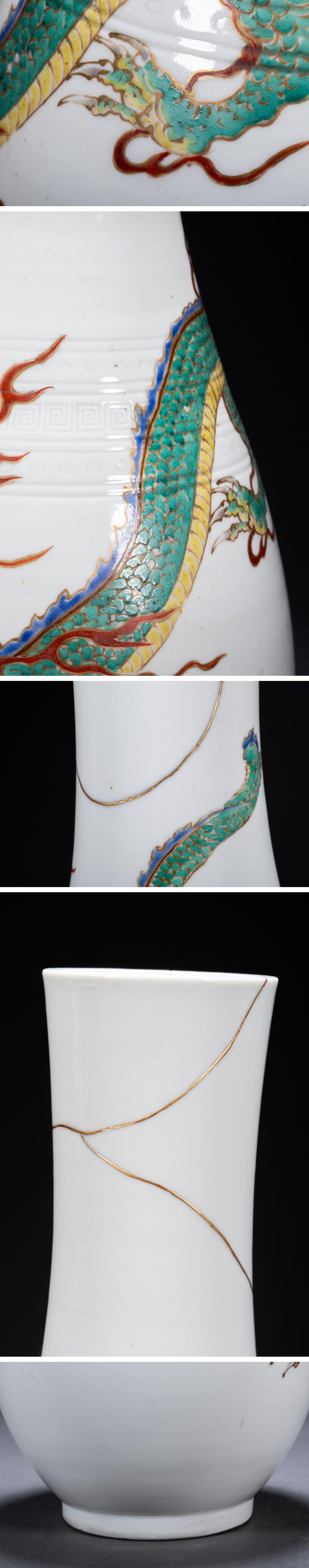 【清】某有名収集家買取品 時代物 中国伝来 白磁 雲龍文花瓶 金繕修復有 共箱 古美術 骨董品7L6-865S05