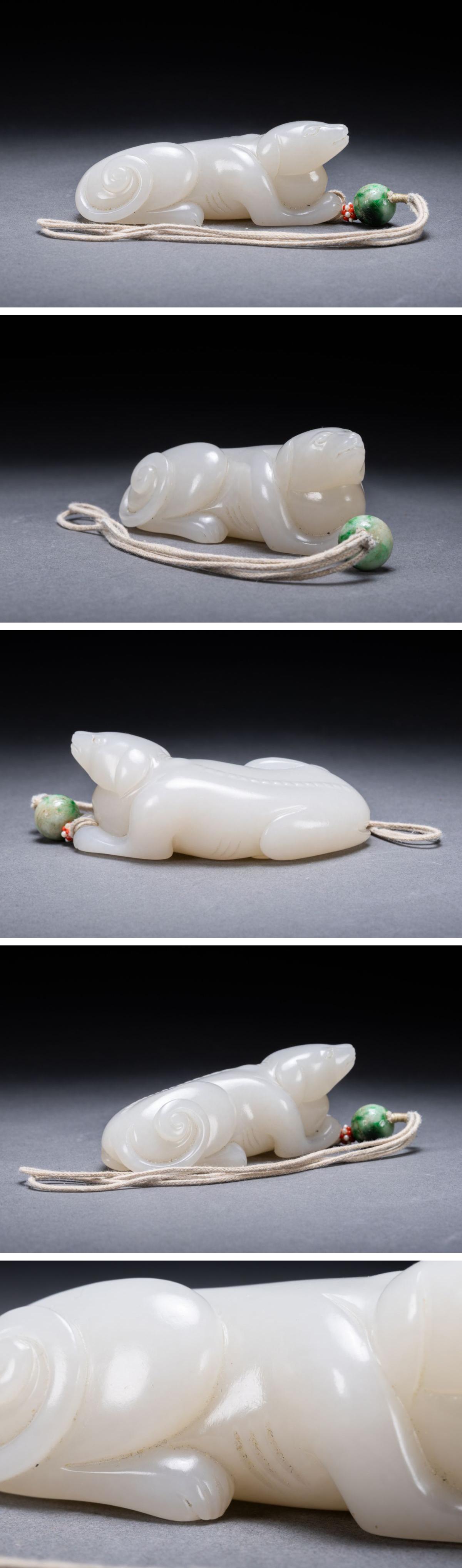 【清】某有名収集家買取品 清時代物 和田玉 子料 白玉犬根付 彫り物 古美術 骨董品7L11-73S20