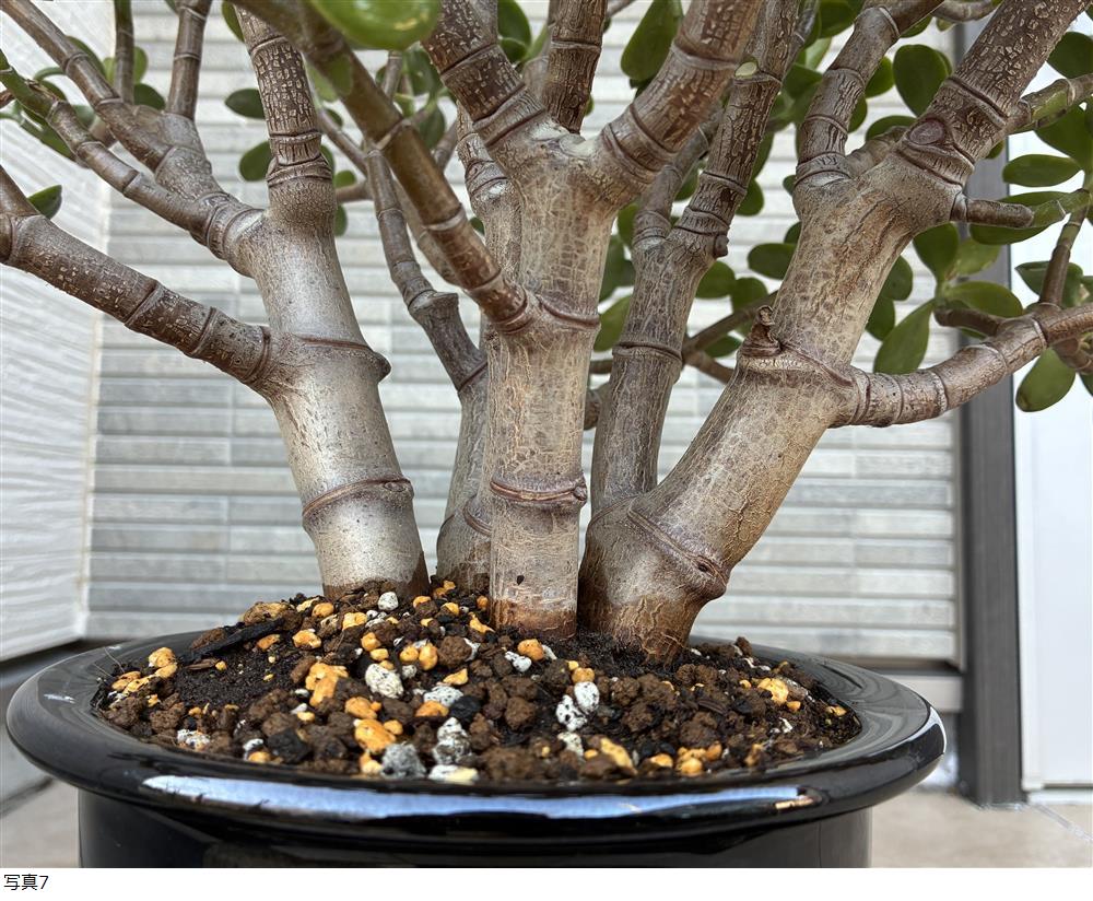 | 大株!★美形樹形!★『金のなる木 フチベニベンケイ(縁紅弁慶)Crassula ovata』の植木 樹高約46cm(鉢底から) |