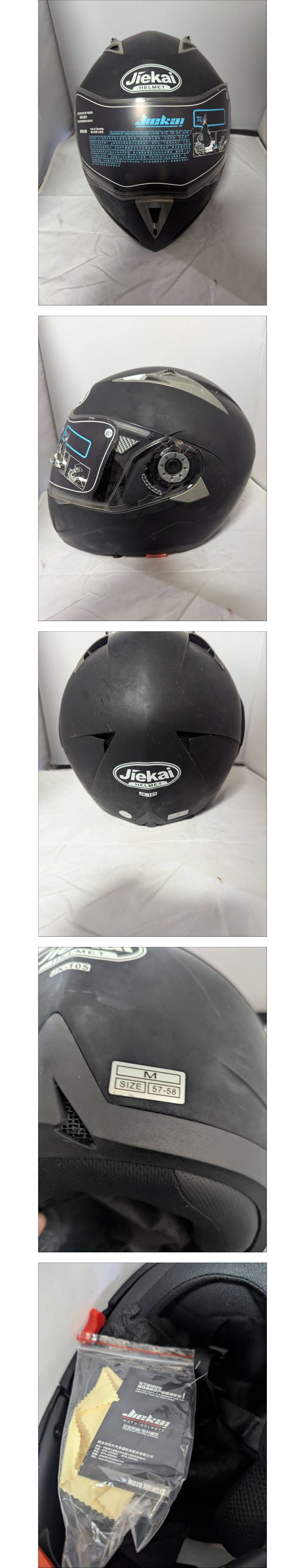 | 商品説明 | 【商品について】 ご覧いただきありがとうございます。 この度出品いたしますのは「 ●【未使用】Jiekai フルフェイスヘルメット JK-105 Mサイズ 57-58● 」でございます。 個人所有物の整理のため、出品する運びとなりました。 中古品ではございますが、ご活用いただける方にお譲りできれば幸いです。 商品の状態、付属品、寸法等につきましては、掲載写真にてご確認をお願いいたします。 補足:当方、ペットの飼育および喫煙の習慣はございません。お気にされる方はご参考ください。