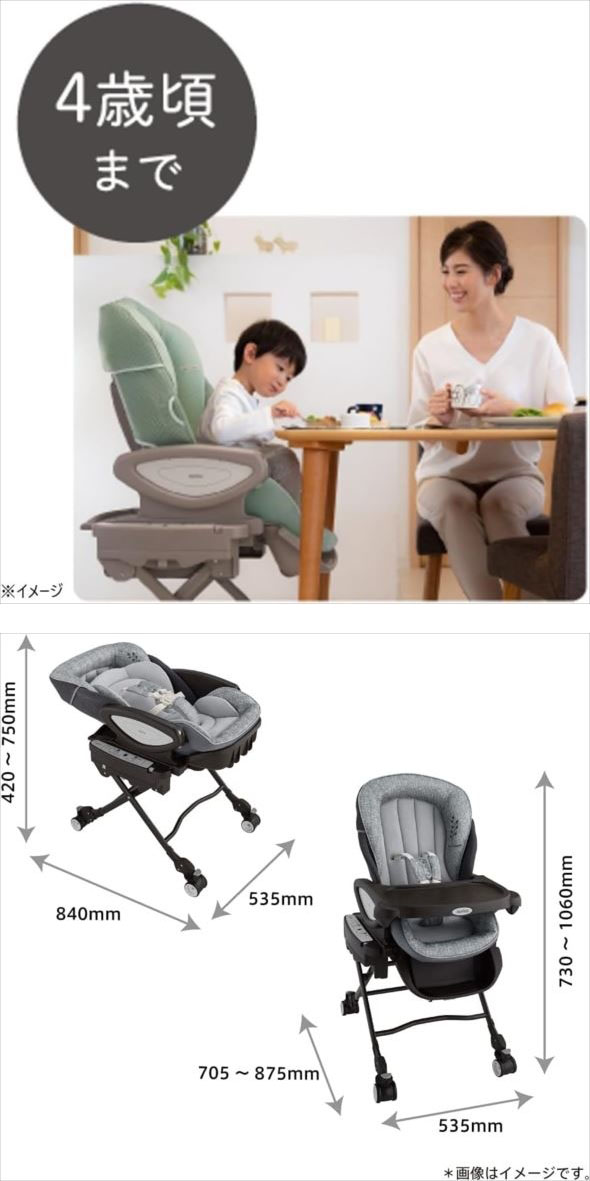 | こちらの商品は未使用品です。 外観チェック、リクライニング、スイング、上下の確認済みです。 ★メロディが鳴りません。 ■元の箱に傷やスレ、テープ剥がれがございます。 ■アウトレット品につき、本体に軽い擦れや印刷物に多少の傷みが ある場合がございます。その分、お安くご提供させて頂きますので ご了承の上、お買い求め下さい。 ※トラブル防止の為にも程度は画像を見てご判断下さい。 ※一部画像はイメージ画です。 標準付属品は全て揃っております。 ランク【S】 新品や未開封品・未使用品 (撮影の為の開封品含む) | ◯サイズ ベッド時:W535×D840×H420~750(mm) チェア時:W535×D705~875×H730~1060(mm) ◯重さ 12.7kg ※ACアダプターを除く |