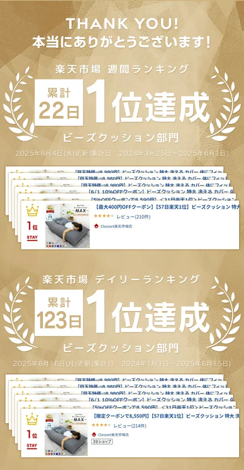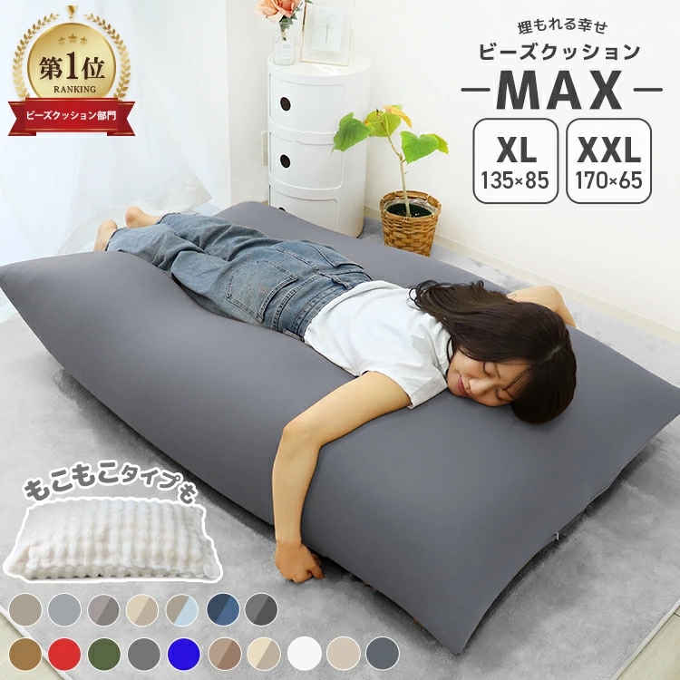 \埋もれる幸せ…とろける座り心地で毎日に癒しを♪/ いろんな体勢にピッタリフィット! 寝転がったり、座ったり、足置きにしたり、いろいろな使い方が楽しめます。 どんな姿勢でもフィットしてくれるので、一度座ると立ち上がれなくなる心地良さです。 【ビーズクッションのオススメポイント】 ・これ一つで、座椅子・ベッド・ソファー・イスになる! ・軽いから移動がラクラク!掃除やスペース確保も簡単♪ ・高さがないからお子様でも使える! ・クッション性に優れているためお子様も安心・安全 ・カバー着脱が簡単だからいつでも洗えて清潔! ・リラックスしたいときの必需品!体を包み込む圧倒的安心感♪ ・こたつを利用する方にもおすすめ♪ 耐久性抜群のクッションカバーを採用。 伸びの良い生地で肌触りも抜群です◎ 外カバーは取り外して、洗濯機で洗濯可能。 こだわりの幅広ファスナーなので着脱も簡単! ビーズの調整・補充が可能なので、ずっとご愛用いただけます! 品番:BSK009GY 【商品詳細】 タイプ:両面ストレッチ カラー:グレー サイズ:(約)横幅170cm×奥行65cm 重量:(約)5.6kg 素材:ポリエステル、ポリウレタン、ポリスチレン ■超特大クッション(本体)他のカラーはコチラ 【注意事項】 ・ビーズクッション本体は洗えません。必ず専用カバーを付けてご使用ください。 ・臭いが気になる方は風通しの良い場所で陰干ししてからご使用ください。 ・布製品の特質上、糸のほつれ、多少のサイズ違いなどが見られる場合がございます。あらかじめご了承ください。 ・商品は、モニターによって色合いが異なって見える場合があります。 ・仕様・デザインは改良のため予告なく変更することがあります。 |
