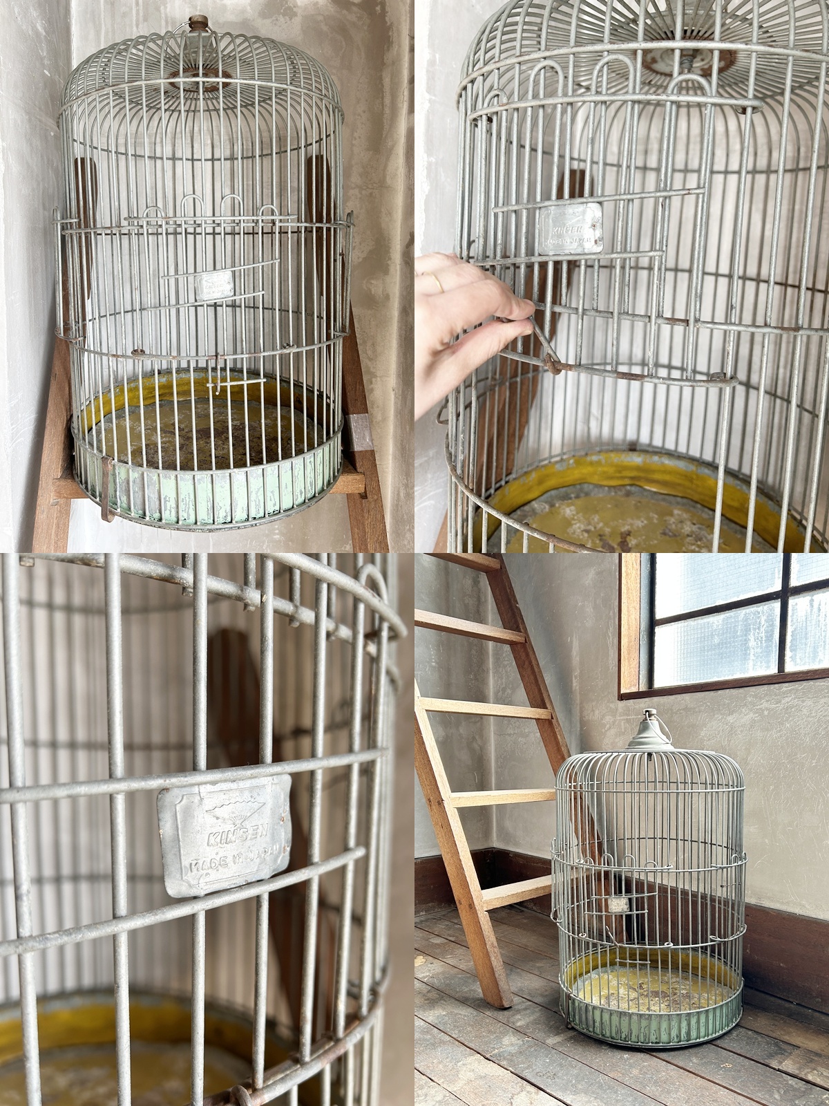 特大 アイアン バードゲージ ドーム型 KINSEN ビンテージ 日本製◇鳥籠/鳥篭/鳥かご/インテリア/吊り下げ/古道具/収納/ディスプレイ/雑貨