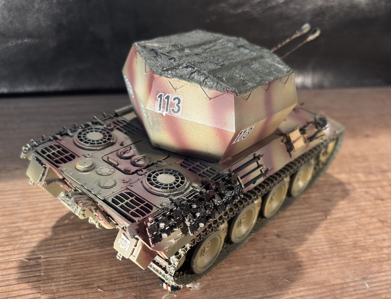 ペーパープランに終わった車両ですが、天蓋クローズドとオープントップとあり本品は擬装網をかけられたオープントップ車両に仕立てるレジンキットをコンバージョンパーツに使ってます。