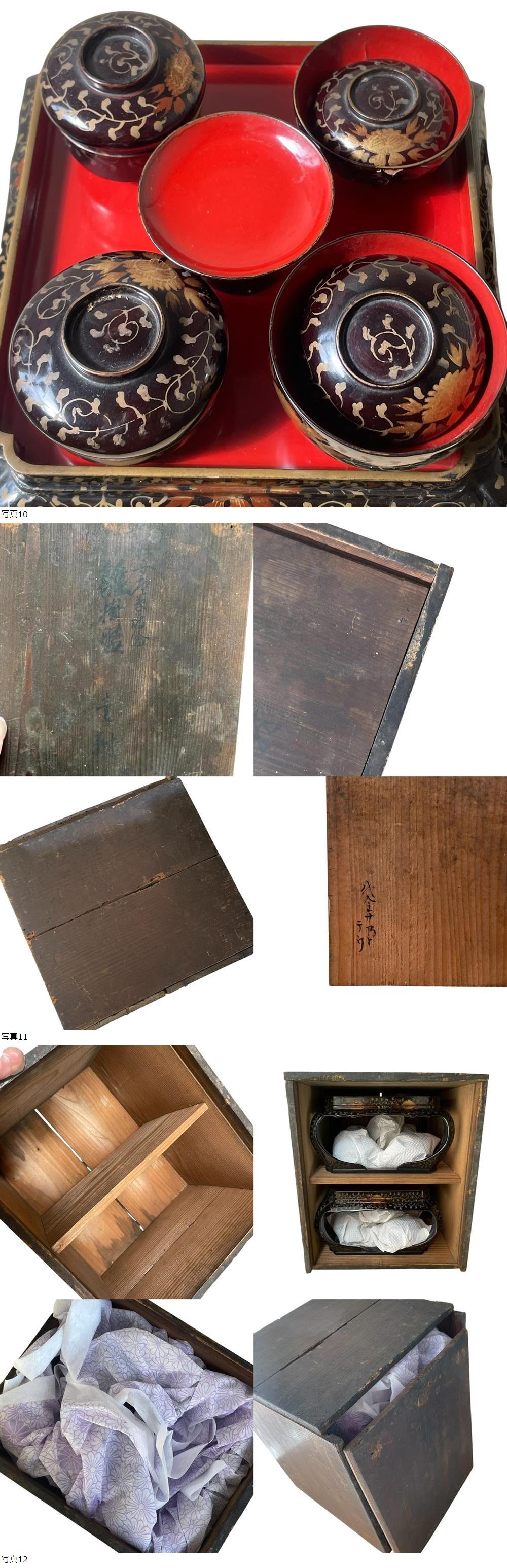 | 【蔵出し】古い アンティーク 雛道具 雛掛膳 壹對 雛人形 蒔絵 木製 御膳 嘉永四年 1851年製 江戸末期 現状品 ◇TM137 |
