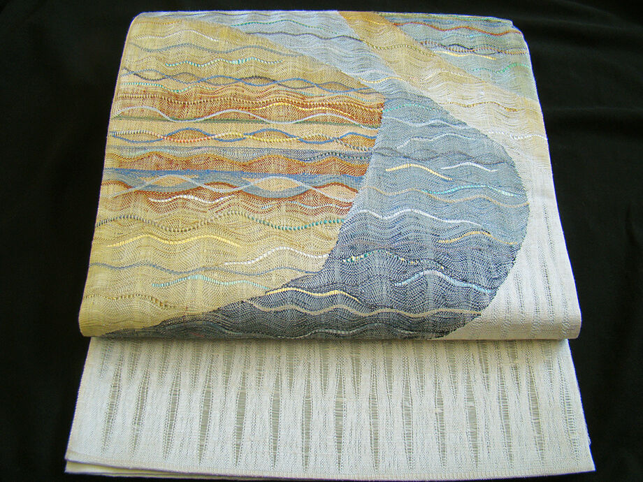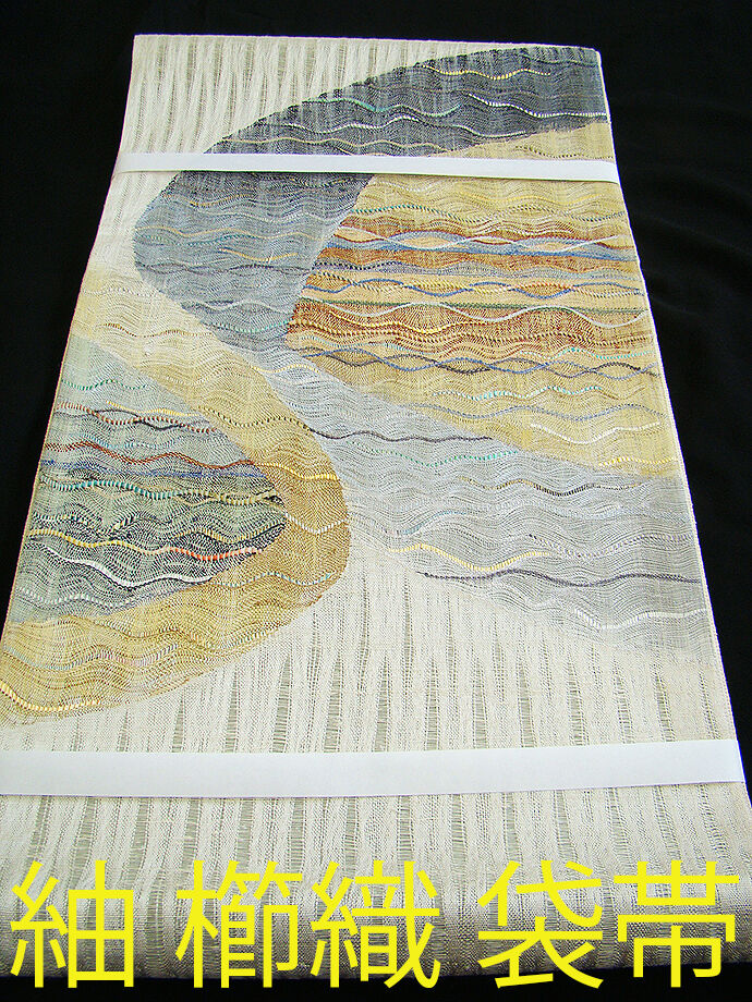 | ちょっと一言 | 通好みな雰囲気漂う味わい深い帯姿を演出する表情豊かな紬地の櫛織の袋帯です。 1本持っているとコーディネートの幅が広がり暮らしのお洒落に重宝する逸品です。 |
