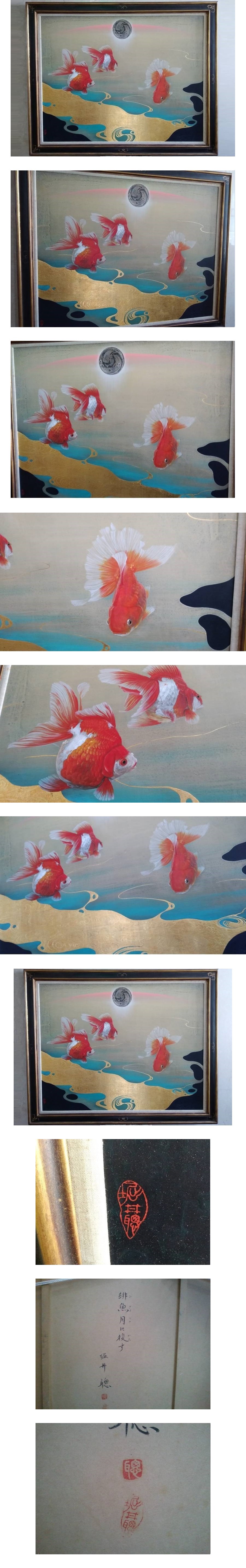 ☆r☆【真作・金魚 絵画・油彩/アクリル画・画集掲載作品】堀井 聰「緋魚月に復す」大型絵画 金魚絵 50号サイズ 金魚画☆ | |||