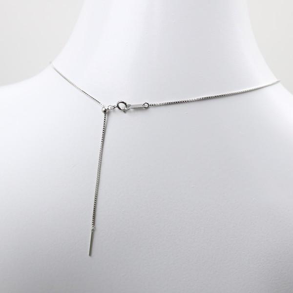 | 約1mmのベネチアンチェーンネックレスで自由に長さ調節できるタイプ。約45cmから短く調節できます。 | チェーンはシルバー製でしっかりした作りをしています。カジュアルシーンから活躍するデザインネックレスです。 |