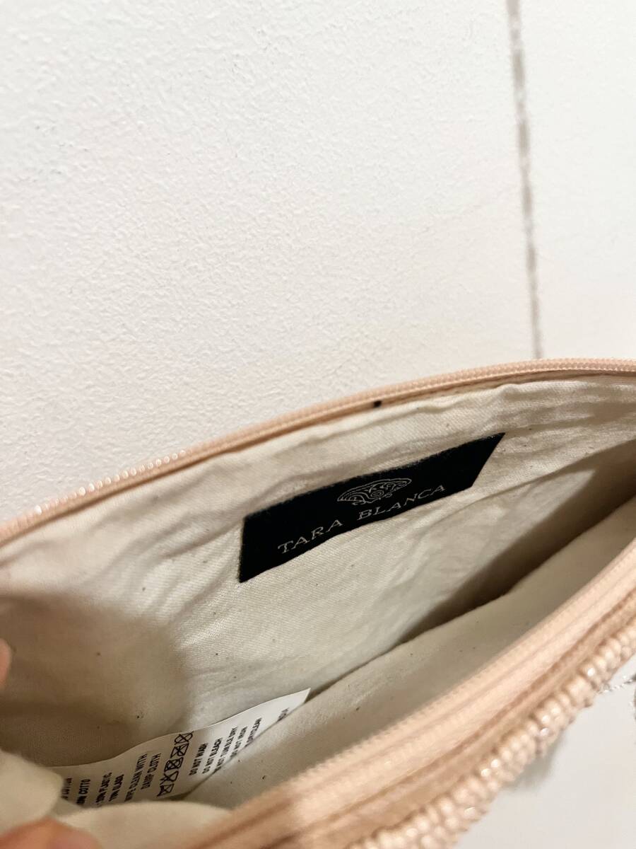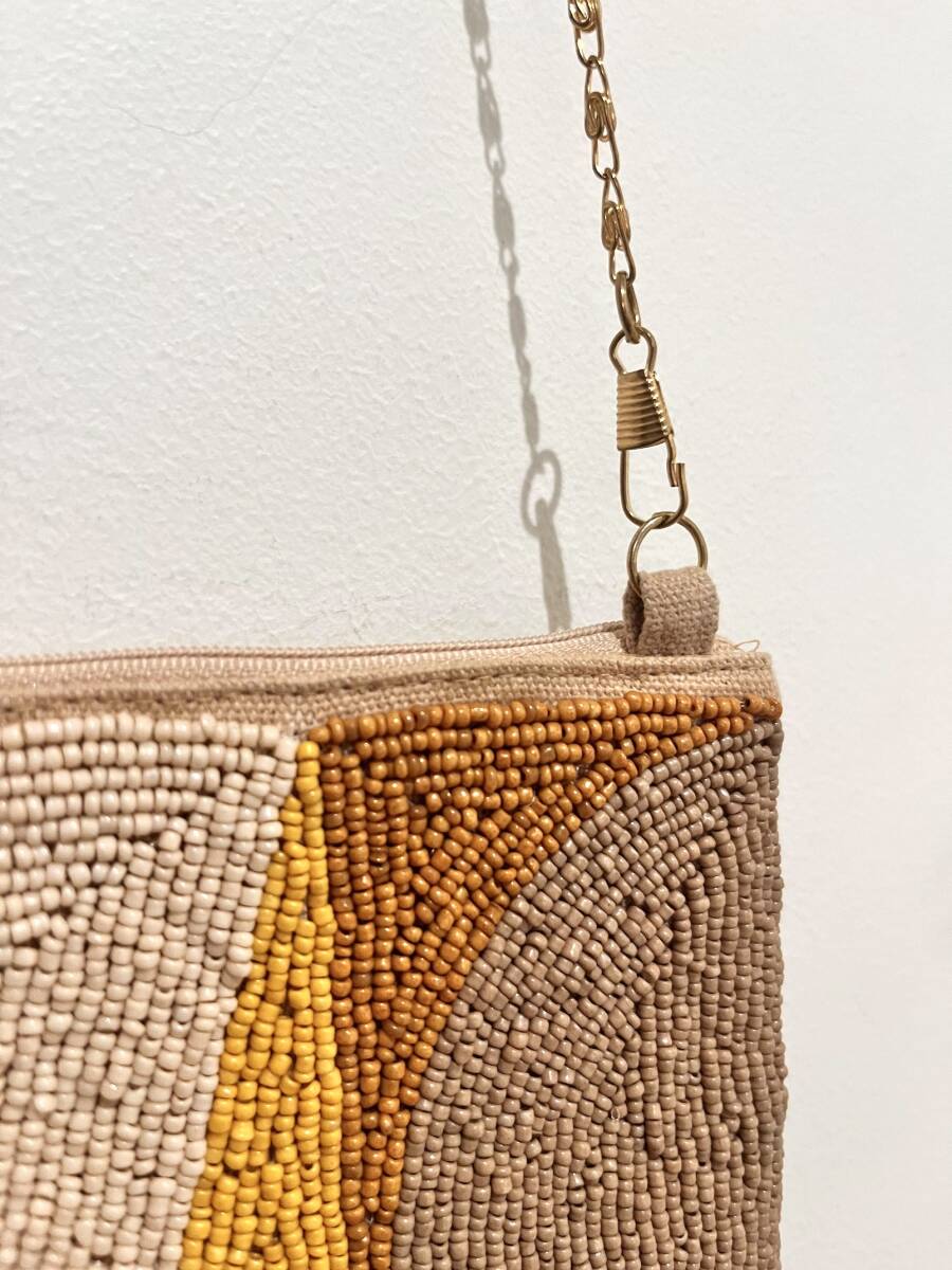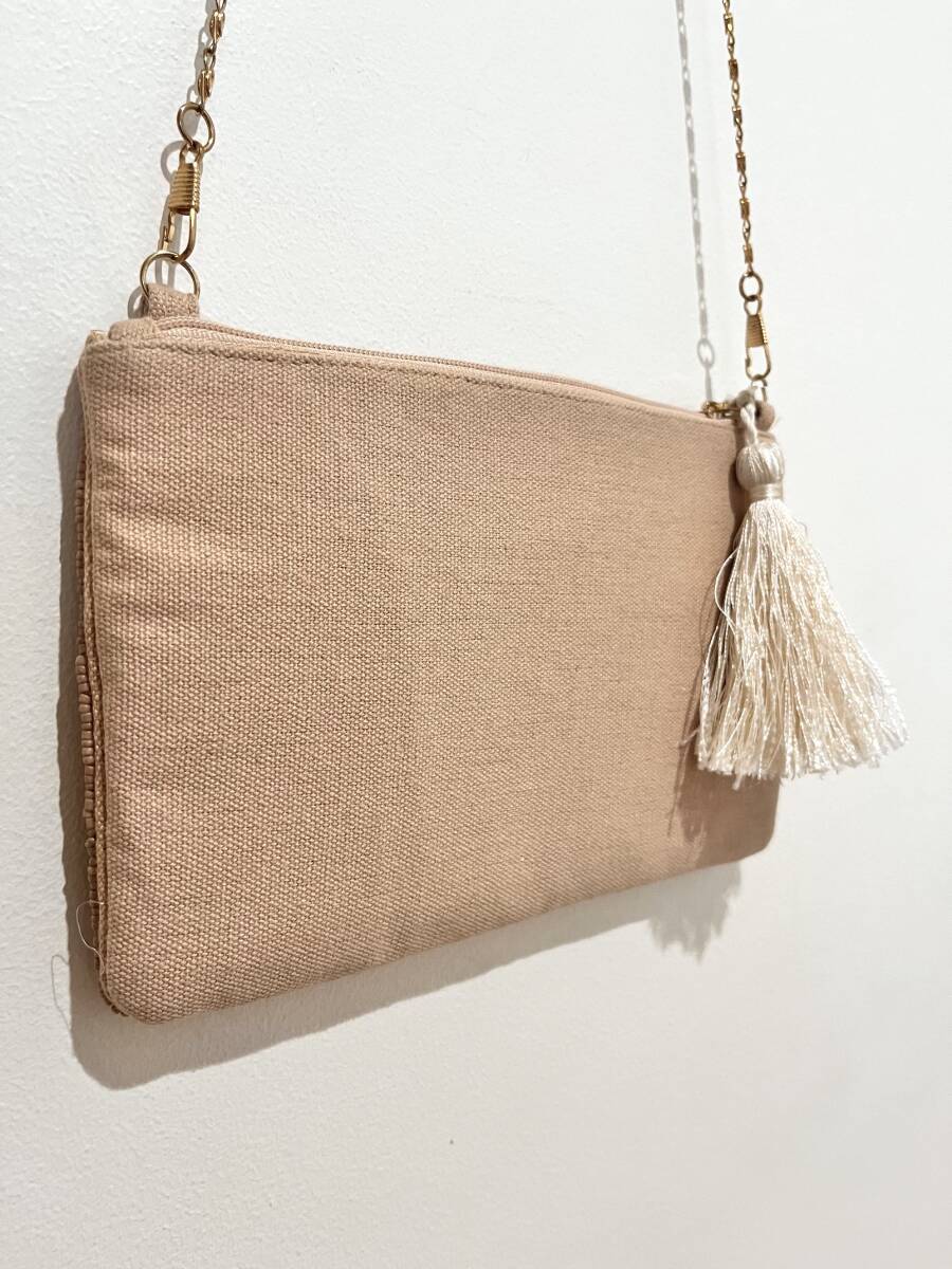 | ブランド:TARA BLANCA HOME アイテム:ビーズ バッグ/クラッチ/ポーチ/ショルダー カラー:ナチュラル系/イエロー 素材:ベース生地/裏地コットン100%、ビーズ、チェーン 平置き実寸で 14×21cm位です。チェーン部分約120cm インド製 日本橋三越にて1万円程で購入いたしました。 |