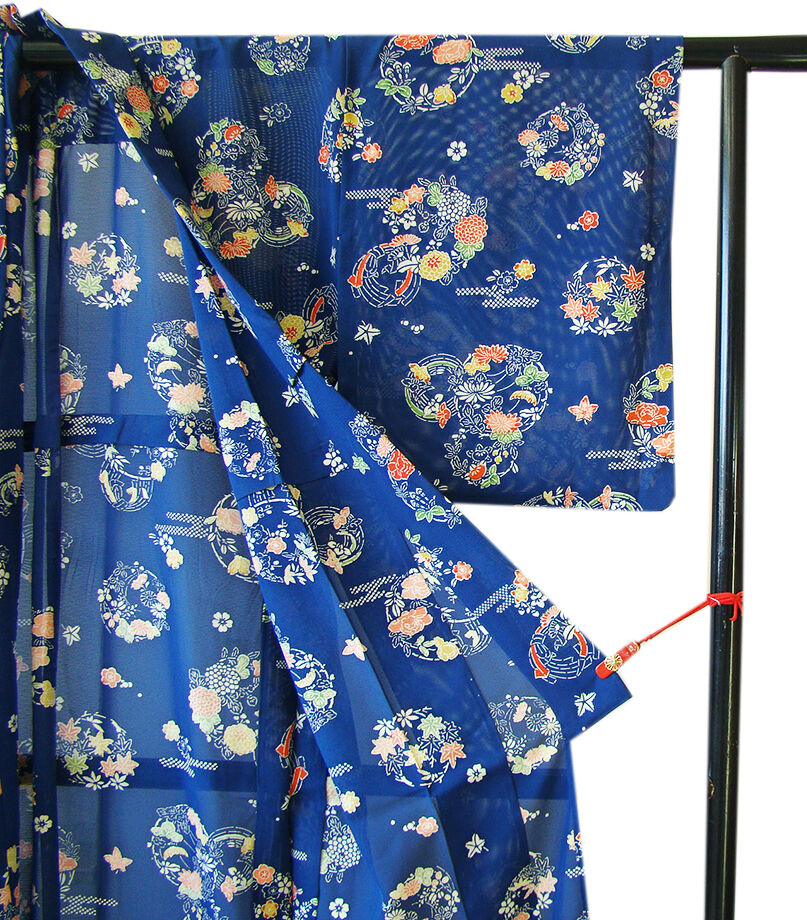 | 商品説明 | こちらのお品は夏物でございますので、7月~8月にお召頂ければと思います。 「絽」と言えば、紗と双璧を成す夏のお着物の生地で その最大の魅力は絶妙の透かし加減でございます。 清涼感溢れる地の風を通すしなやかさは夏に着物を着るという贅沢を 快適に愉しませてくれることでしょう。 着物には、大きく分けて「袷(あわせ)の着物」と「単衣(ひとえ)の着物」と「夏着物」があります。 反物(表地)を着物に仕立てるときに、裏地類をつけるものを袷の着物、 つけないものを単衣の着物と呼び、胴裏や八掛といった裏地がつかない一枚ものの着物です。 また裏地がないため、座る時などにヒップのラインが目立たないよう、 居敷当て(いしきあて)の生地をつけることもあります。 居敷当ては付いておりません。 とてもしなやかなさらっとした肌触りが極上の着心地を誘う滑らかなしっかりとした「駒絽」の生地は、 紺瑠璃色地に朱、緑、黄、白色等の花丸文の染柄が洒落感高い着物姿を演出しております。 また、バチ衿仕立てとなっております。 |