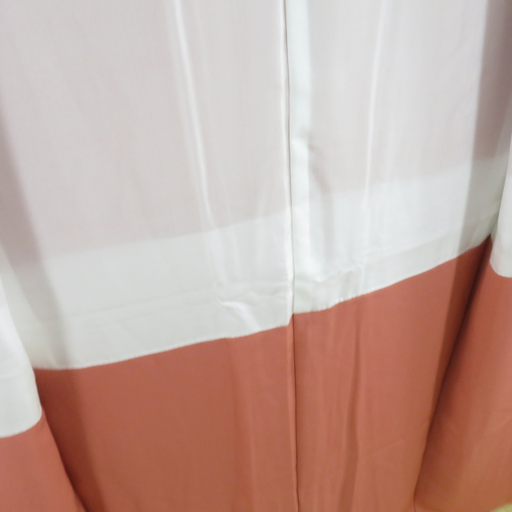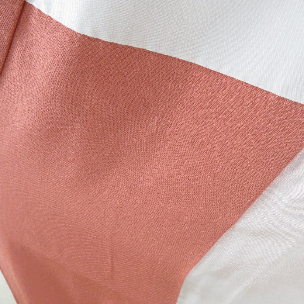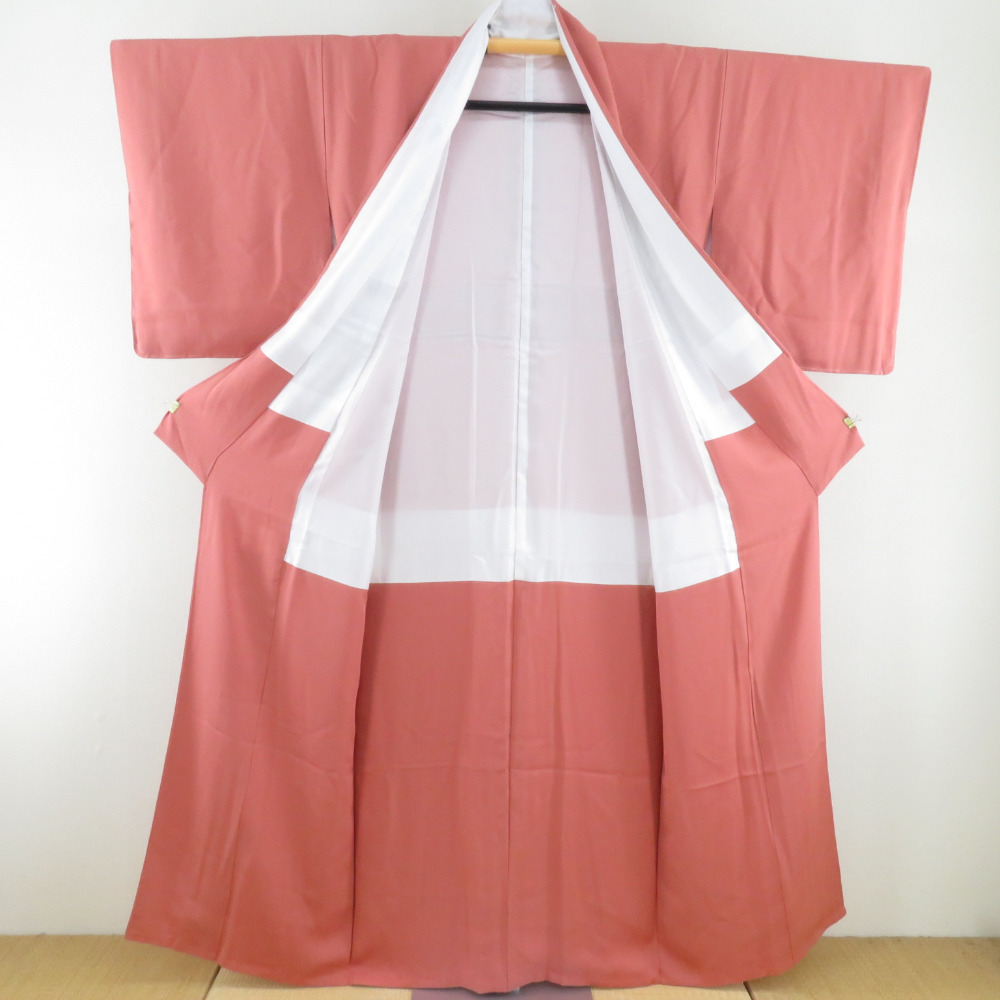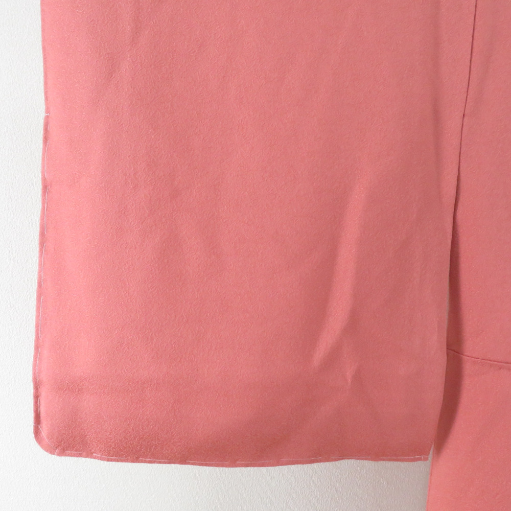 | 色無地 袷 広衿 桃橙色 菊地紋 正絹 一つ紋 違い鷹の羽紋 仕立て上がり着物 身丈155cm |