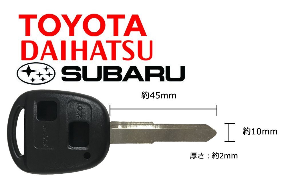 ブランクキーに関しましては、 同年式・同車種でもオプション等により数種類ございますので 車種、年式、型式などからは1種類に特定できず、 お手持ちのマスターキーと【形状、サイズ】を見比べてお客様に 判断して頂く必要がございます。 ![]() ![]() ※こちらの商品はご注文受付後のキャンセル、返品は不可となります。 ※キーナンバーが分からない場合は未カットのブランクキーの発送となりますので、ご注意くださいますようお願い申し上げます。 キーレスのボタンが2ボタン仕様のブランクキーです。 スペアキー、鍵の折れ、割れ、傷汚れ等にお安く改善が可能です。 内部のキーレス送信機は付属致しておりませんので純正のものを流用下さい。 社外品のため、メーカーロゴは入っておりません。 車種や年式で数種類ございます。 当店では車種・年式・車検証では特定できかねますので、 お手元の鍵と販売ページの写真、リモコン部及び鉄のブレード部の形状を見比べて お客様にて判断していただくようお願い申し上げます。 ・ボタン数:2個 ・参考キーナンバー (キーナンバーだけでなく実際の鍵と掲載画像を必ずご確認ください) 75000-75999 ・参考車種 ハイゼットカーゴ アトレーワゴン ピクシスバン サンバーバン など ・サイズ(キー部分):長さ:約45mm 幅:約10mm 厚さ:約2mm ・当店では車種・年式・車検証で特定できません。 画像のキー形状とカバー形状、サイズをお手元の鍵と比較しご確認ください。 ・イモビが付いている車種は送信機の中に組み込まれていますので、そのまま移植すれば問題なくエンジン始動できます ※ 一部イモビがプラスチック内等に埋め込まれている場合移設・加工が必要です ![]() ■キーナンバー確認方法 ・新車購入ならキーナンバーが書かれたプレート ・キーナンバープレートがない場合は運転席側のドアのシリンダー ・マスターシリンダー などに数字が刻印されています。 上記以外の場合はディーラーなどにお客様ご自身でお問合せ下さい。 ※キーシリンダーの取り外しに自信のない方は整備工場や専門店様にご依頼ください。 ※ディーラーで調べることは可能ですが、別途費用が掛かる場合がございます。 ※取り外したことにより発生した事故・故障・損害は一切保証できませんので、お取り外しは整備工場などで行い、あくまで自己責任の上で取り外しを行ってください。 (作業ミスなどの責任は負いかねます)。 ご注文受付後、キーカットに進みます。 商品の特性上、ご注文受付後はキャンセル・返品など承りかねます。 ご了承のうえご注文をお願い致します。 通常は問題なく純正キーと同様に使用出来ますが、お客様のシリンダー(ドア・イグニッション・トランクなど)の使用状況により、回らない、回転が重いなどの症状が発生する場合がございます。 ![]() ![]() ・当店ではお車への適合の確認や取り付けに関するサポートはおこなっていませんので、お車への適合やご使用方法につきましては専門店さまなどにご相談ください。 ・製造・流通過程(商品同士の擦れ)において商品に多少の擦り傷や汚れ等が発生する場合があります。その点はノークレームでお願いします。 ・当商品はインポート商品の業者様向けの製品(バルク品)のため、メーカー保証書や説明書などは付属していません。 ・梱包は装飾された箱ではなく簡易包装での出荷となります。 |