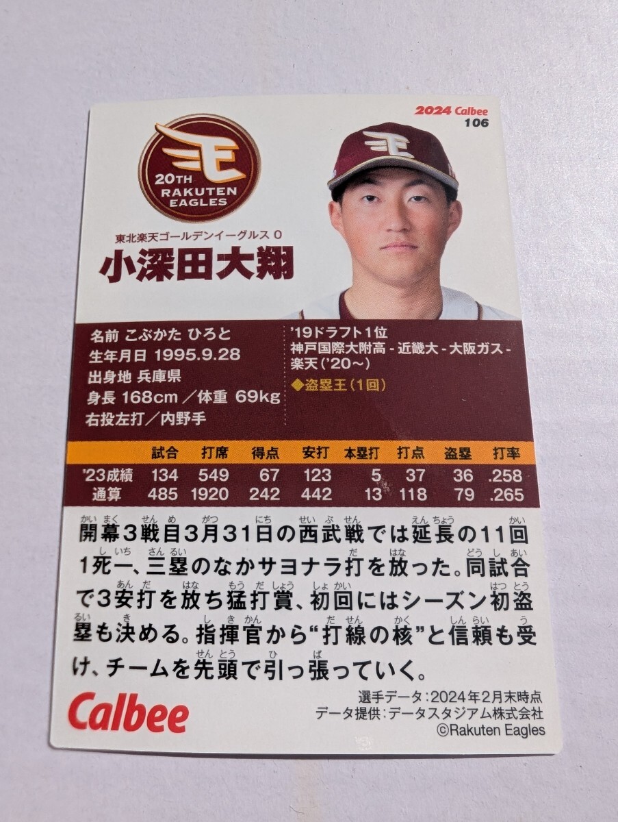 東北楽天ゴールデンイーグルス小深田大翔! 2024カルビー106 |