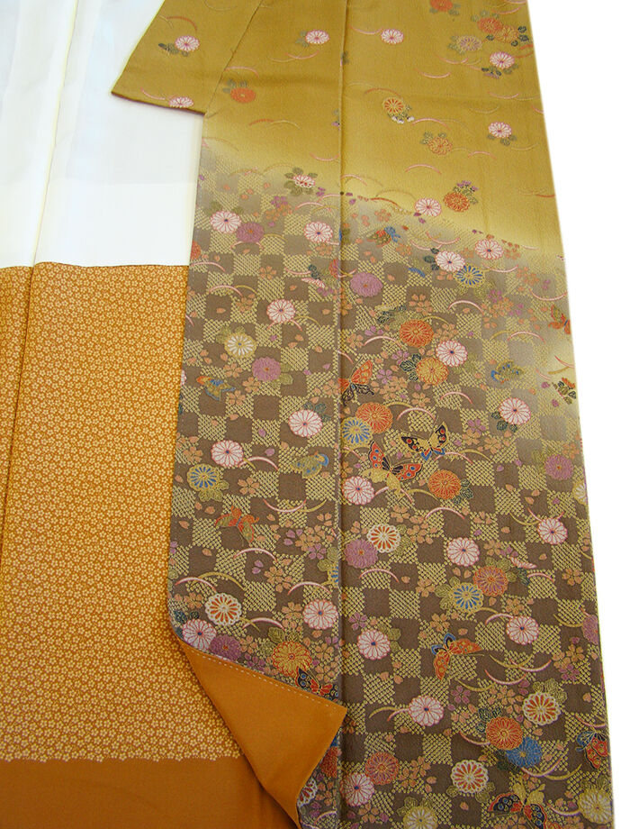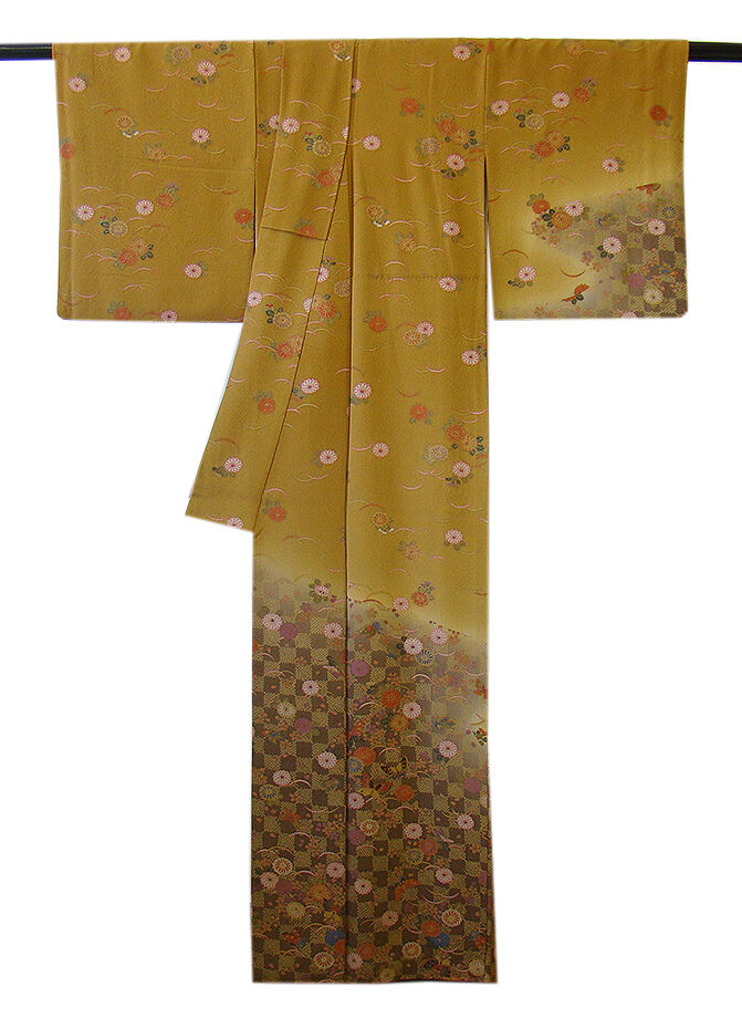 | 商品説明 | こちらのお品は「袷」でございますので、10月~5月までお召頂ければと思います。 とてもしなやかな手触りのふっくらとした着心地良い重めの極上ちりめん地の生地、 渋い山吹茶色地に裾にかけて市松に鹿の子柄、つゆ草、花、蝶柄の染柄、 八掛は駱駝色地に小花柄の染柄(正絹)、幅広い年代の方にお召頂けます。 |