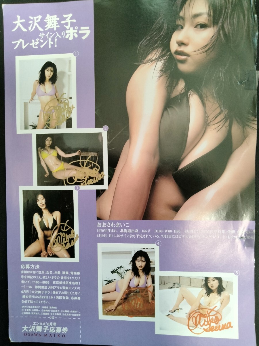 2003年頃に掲載された、100cmJカップの爆乳で名を馳せたグラドル大沢舞子氏のグラビアの切り抜きです。(5ページ分)| 出价者 | 信用 | 价格 | 时间 |