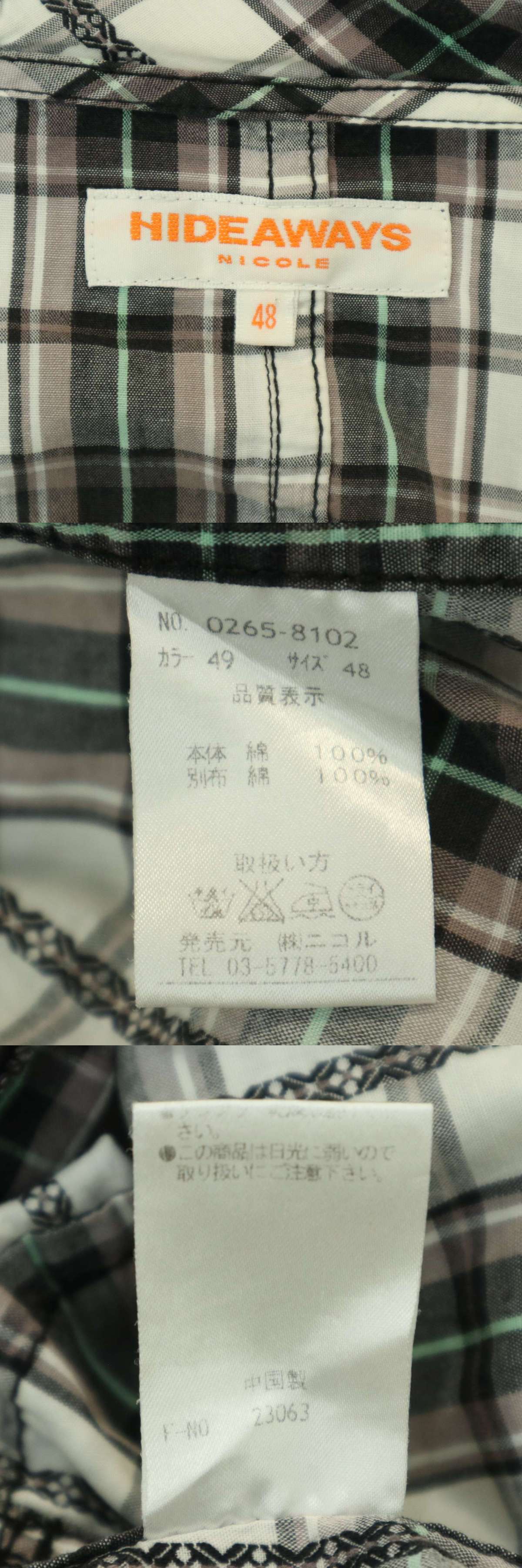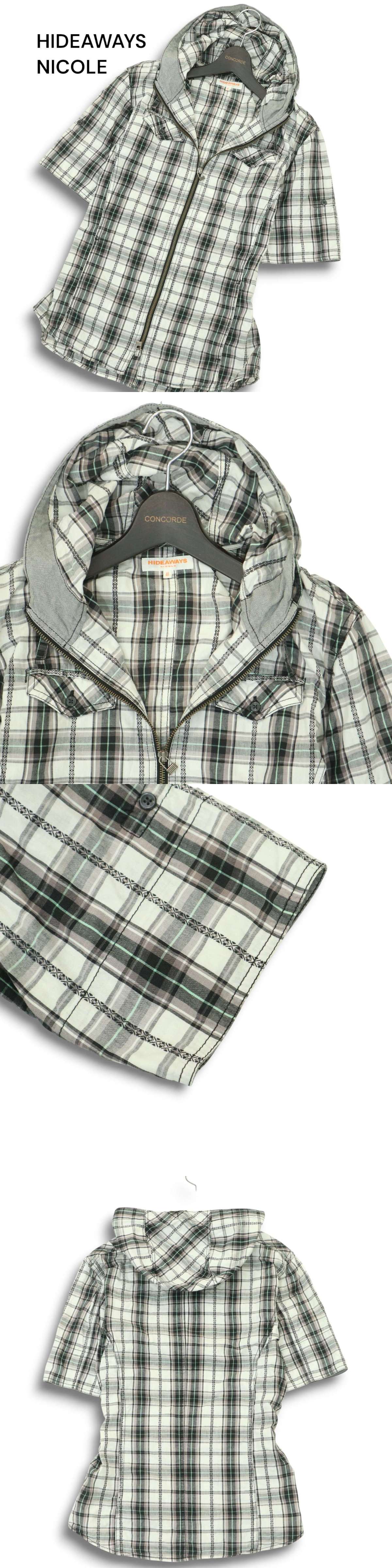 | HIDEAWAYS NICOLE ハイダウェイ ニコル 半袖 ダブルジップ★ フーディー ワーク チェック シャツ パーカー Sz.48 メンズ A5T03394_4#A | |||