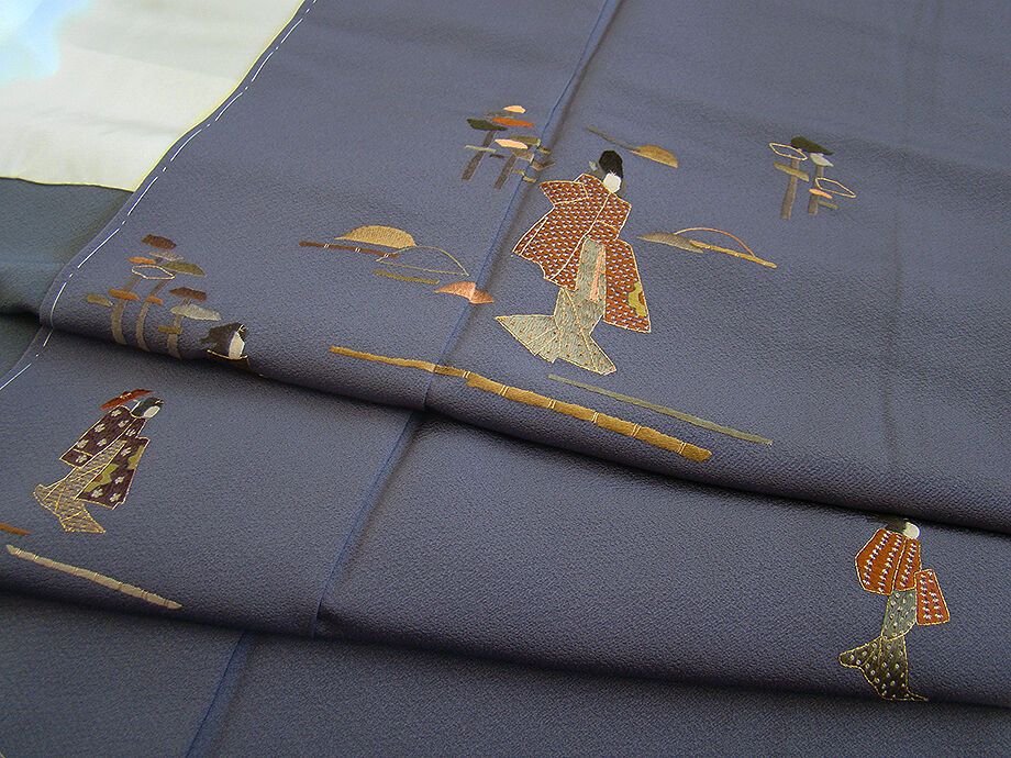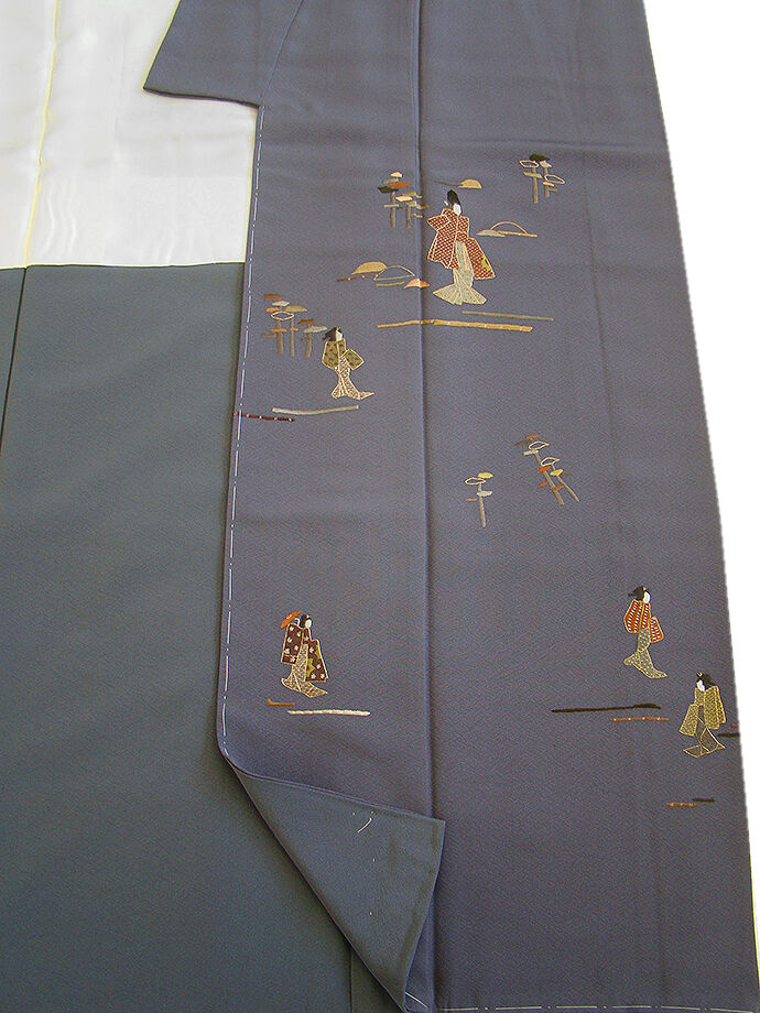| 商品説明 | こちらのお品は「袷」でございますので、10月~5月にお召頂ければと思います。 大変にしなやかで滑らかな手触りの着心地良い重めの極上ちりめん地の生地、 渋い鉛色地に精緻な手技を駆使した極め細やかな金糸入りの人物文の総刺繍が丁寧に刺繍され、 重厚感のある匠の技の美しさをご堪能頂ける仕上がりとなっております。 お慶びのお席や今日を美しく愛でるかの様な装いを印象付ける 正統派のお着物として一枚は欲しい麗しいお着物です。 八掛は共布(正絹)、背に「上り藤」の刺繍紋1ヶ、幅広い年代の方にお召頂けます。 |