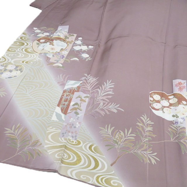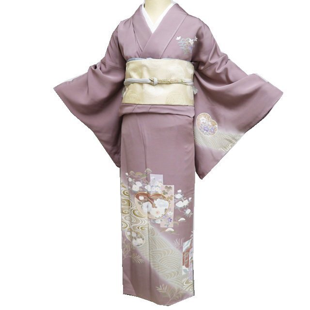 丈171cm(+1) 裄71cm(+0) 袖丈52cm(+3) 前幅24.5cm 後幅30cm ※サイズのお直し、承ります。 (身丈のみ、身幅のみのお直しは承っておりません) ※身丈は肩から測っております。 ※()内は※()内の数字はお直しで直せる長さを示しています。お仕立て直しの場合は胴裏を付け替えるため、さらに長く直せる場合があります。詳しくはお問い合わせください。 単位:cm 素材 正絹 商品ランク B ●着用時期 10月~5月(+-2週間) ●着用シーン 披露宴、パーティー、お出掛け、式典など ●お色 鴇浅葱色 多色 金 シワが残っています。右肩に薄汚れがございますが、目立たない程度でまだまだご着用いただけるお品物です。 写真に写っている着物のみの販売で帯等の付属品はついておりません。 一部商品は実店舗・他サイトでも並行して販売しておりますので売り切れの際はご了承ください。 その他多数販売中 o | ||||||