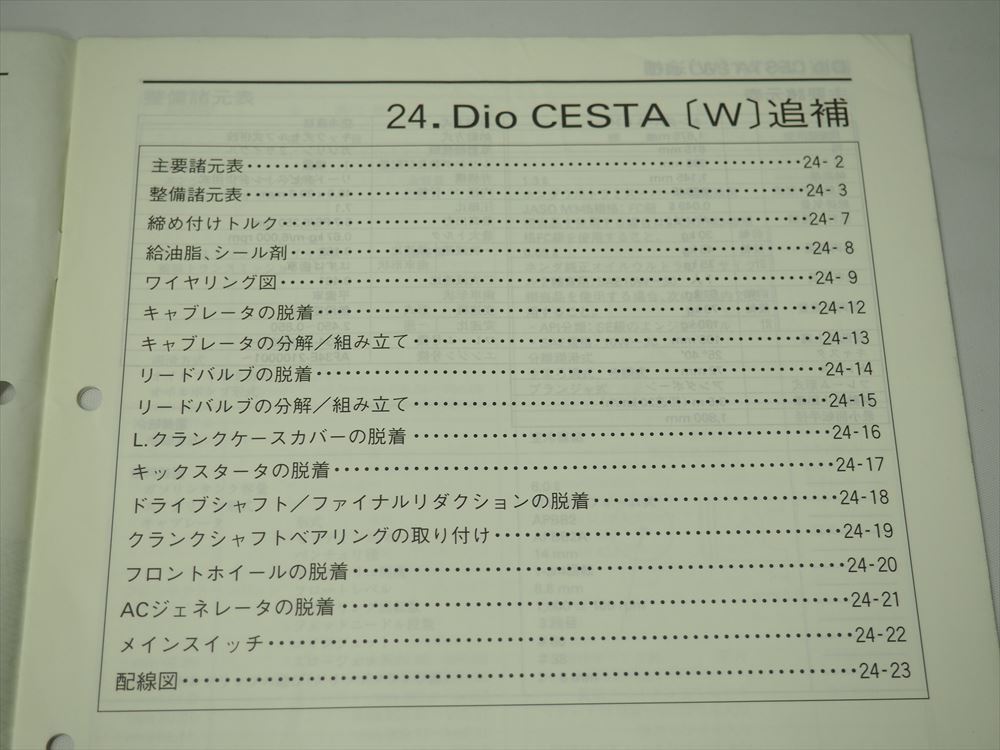 | *こちらは追補版になります。 Dio CESTAの整備上の変更箇所のみの記載になります。 こちらに記載のない内容については、DIO(R、S、T、V) Dio CESTA(S)サービスマニュアル(60GBL00)を参照下さい。 平成9年12月発行 フレーム号機 AF34-2000001~ PartNO.60GBL00U 中古誌ですので、シワ、擦れ、汚れなどがありますが、 ページの欠落はなく問題なく読んで頂けます。 (上記以外にも、見落としがある場合もございますが、ご了承ください。) *全23ページです。 *パーツリストとは違い、分解方法・整備手順・配線図等も掲載されています。 *メーカー製本の純正品です。 *状態をご理解いただいた上、ご検討下さい。 |