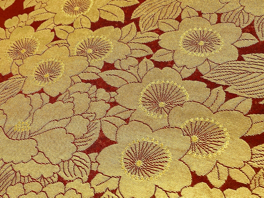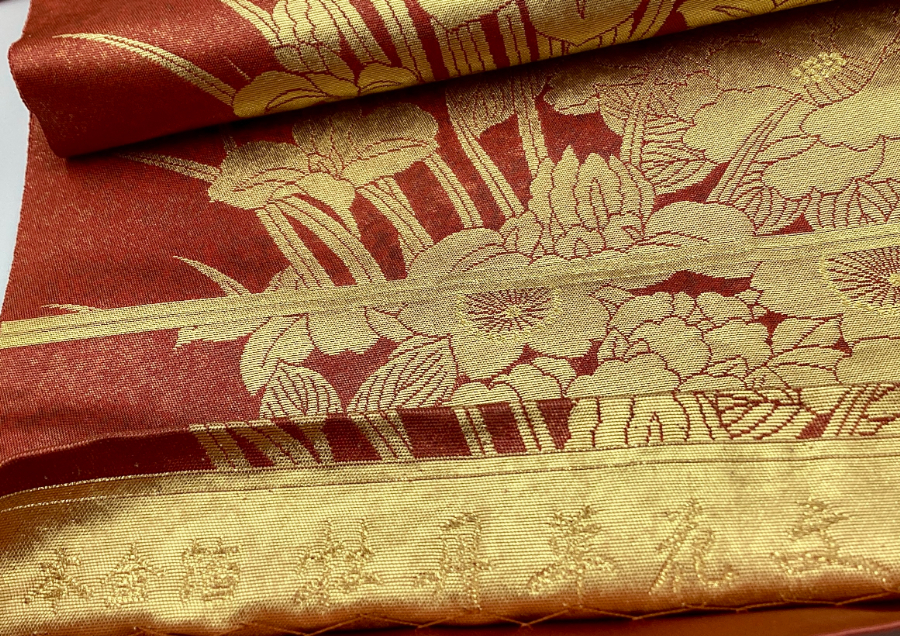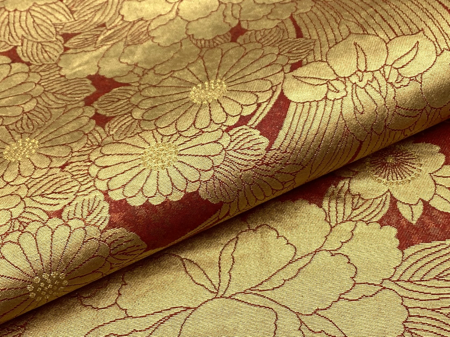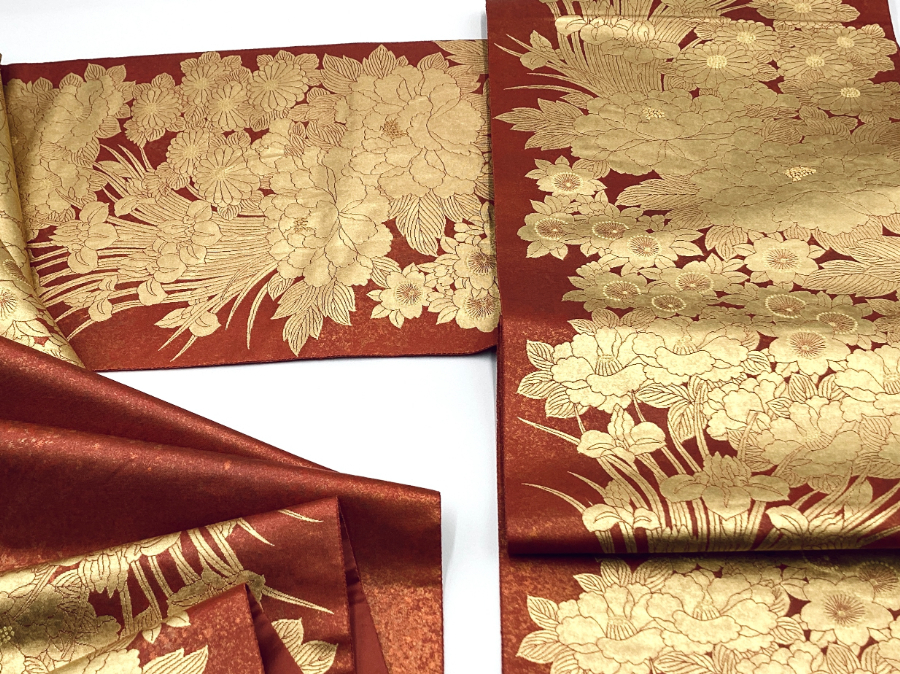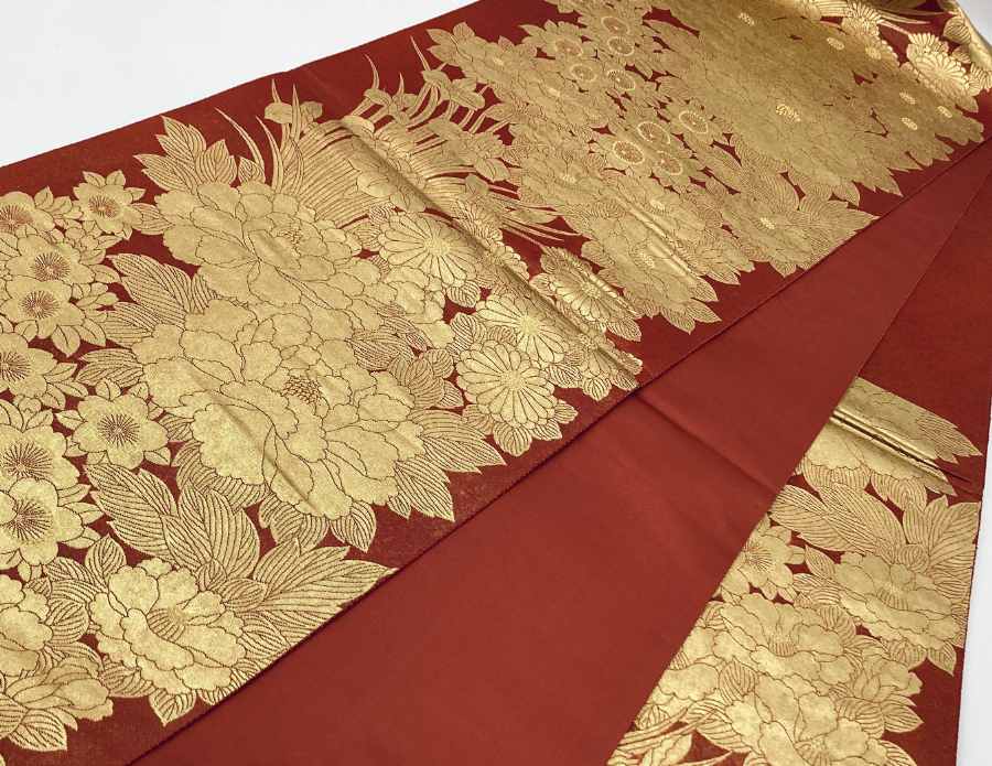 | コメント | 中古の正絹お仕立て上がり袋帯です。 老舗ブランド高級西陣織の長嶋成織物の 本金箔瀞金錦牡丹草花文様の六通柄のお品物です。 振袖、留袖、訪問着、附下、色無地等フォーマルきものにおすすめです。 特に目立つシミ汚れない品物です。 |