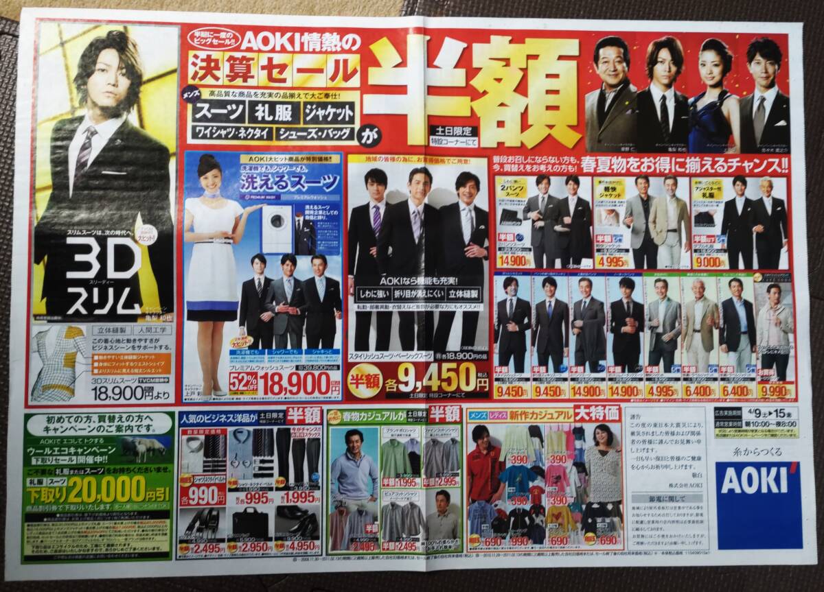 | ◆亀梨和也 上戸彩 田中健 草野仁 佐々木蔵之介 安座間美優「AOKI」情熱の新聞折込広告 2010年◆ | ||