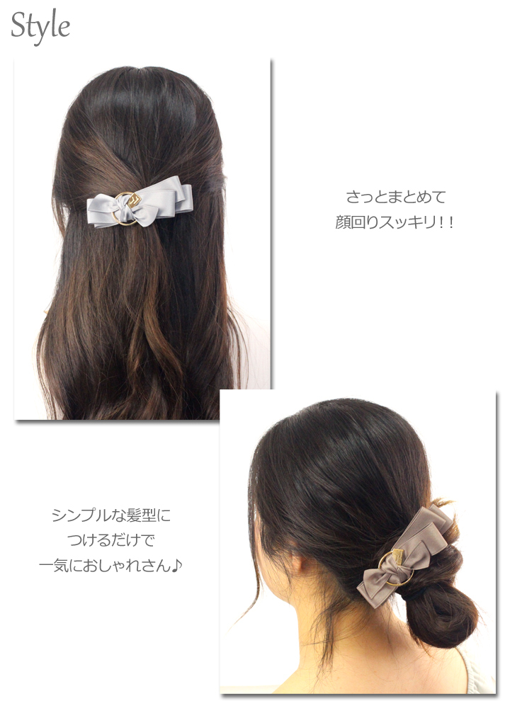 | 商品説明 | ゴールドリング&プレートが目を惹くリボン風ヘアクリップ 生地が幾重にも重なっていますので立体的な存在感のあるモチーフです。 ハーフアップやサイドのちょこっと留めはもちろん、アップスタイルのポイントアクセにもお勧めです☆ |