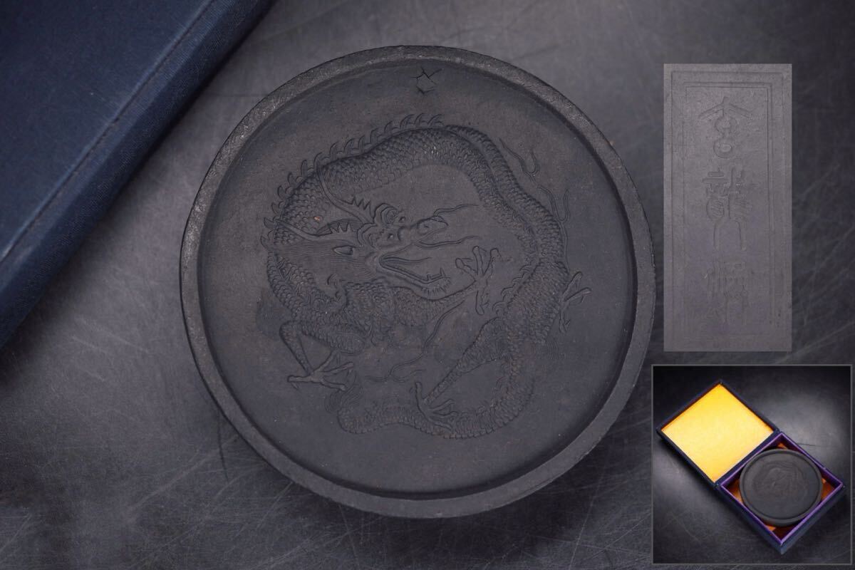 | 玄龍煥 款 古墨 龍紋 箱付 / 中国美術 墨 丸墨 文房具 書道具 文房四宝 .G2038 |