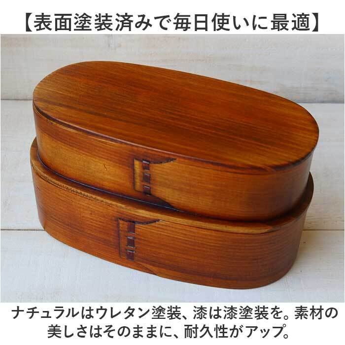 | 商品説明 | ・・【いつものランチをもっと美味しく♪】 ・見栄えも美味しさもアップ!こだわりの天然杉を使った「曲げわっぱ 二段弁当箱」。 ・【温かみのあるわっぱ弁当箱】 ・美しく温もりのある伝統のわっぱ。天然杉の木調が食材を引き立て、ランチタイムがより豊かに。 ・(※)天然素材のため、個体差がございます。 ・【時間が経ってもごはんが美味しい】 ・木の調湿作用でご飯がベチャつかない!冷めても美味しくいただけるのが魅力。 ・【表面塗装済みで毎日使いに最適】 ・ナチュラルはウレタン塗装、漆は漆塗装を。素材の美しさはそのままに、耐久性がアップ。 ・【お好みで選べる2サイズをご用意】 ・・700mlと1000ml。しっかり入りつつ、すっきり積み重ねた2段タイプ。 ・【コンパクトに持ち帰り可能】 ・食べ終わったら、ひっくり返して1段に!かさばらず、持ち帰りがスマート。 ・【キレイな盛り付けをキープ】 ・おかずが片寄りにくい仕切り付き。お好みの位置にスライド調節できて、盛り付け悩みも解消。 ・【持ち運びに便利なランチベルト】 ・お弁当箱をホールドするランチベルトが付属。うっかりフタが開いてしまう心配不要。 ・【スポンジ洗いできてお手入れも簡単】 ・使った後は中性洗剤とスポンジで洗い、水気をしっかり拭き取って通気性の良い所で乾燥! ・【飽きが来ず長く愛用できるアイテム】 ・ナチュラル感たっぷりな、職人の手づくり品。毎日のランチが楽しみになること間違いなし! |