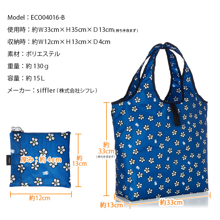 (使用時):約W33×H35×D13cm(持ち手含まず) (折畳時): 約W12×H13×D4cm |