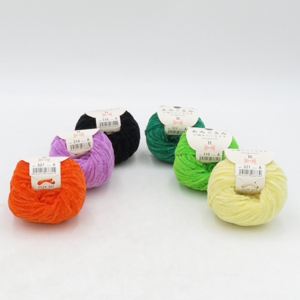 | 商品説明 | 糸切れが少ないモールヤーンです。小物作りや編みぐるみづくり、ぬいかつにおおすすめ。 307,310,311,314,318,321 各1玉 仕立:15g玉巻(約65m) 使用針:棒針4-5号 かぎ針 4/0号 標準ゲージ:棒針 20-21目 34-35、かぎ針(長編み)24目 11段 | ||