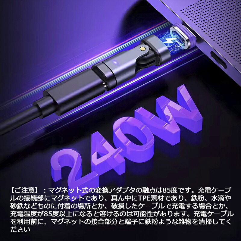 充電ケーブルの接続部にマグネットであり、真ん中にTPE素材であり、鉄粉、水滴や砂鉄などものに付着の場所とか、破損したケーブルで充電する場合とか、充電温度が85度以上になると溶けるのは可能性があります。
