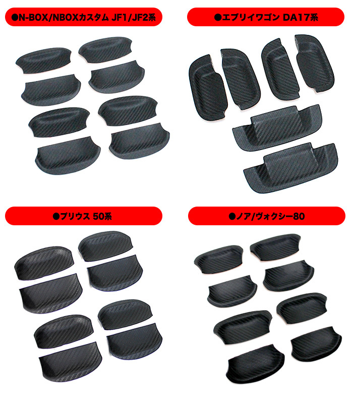 | ドアの開閉時の細かな傷からボディを保護! 取付けも両面テープ装着済みなので貼り付けるだけ! カーボン柄でドレスアップ効果も抜群! 機能性とドレスアップ効果を兼ね備えたお勧めパーツです!! ■適合車種:N-BOX/N-BOX CUSTOM JF1/2系 H23.12〜H27.1 ■カーボン柄 ■PE樹脂製 ■両面テープ装着済み ■セット内容:ドアハンドルアンダープロテクター/日本語説明書 |