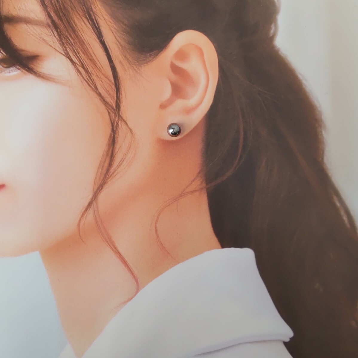 つるんと滑らかな質感の丸玉が耳元でさり気なく輝きます。