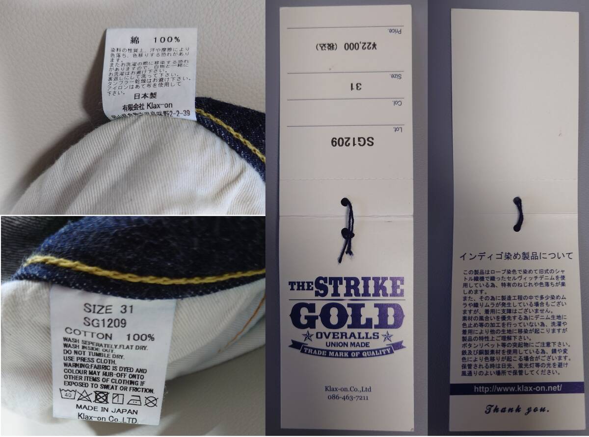 ジャパンデニムの「聖地」岡山県倉敷市児島 KLAX-ON製 THE STRIKE GOLD SG1209です。