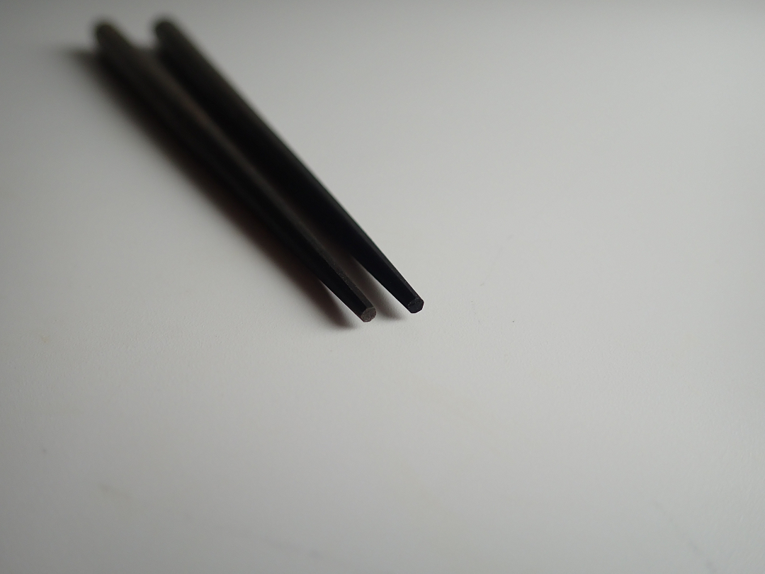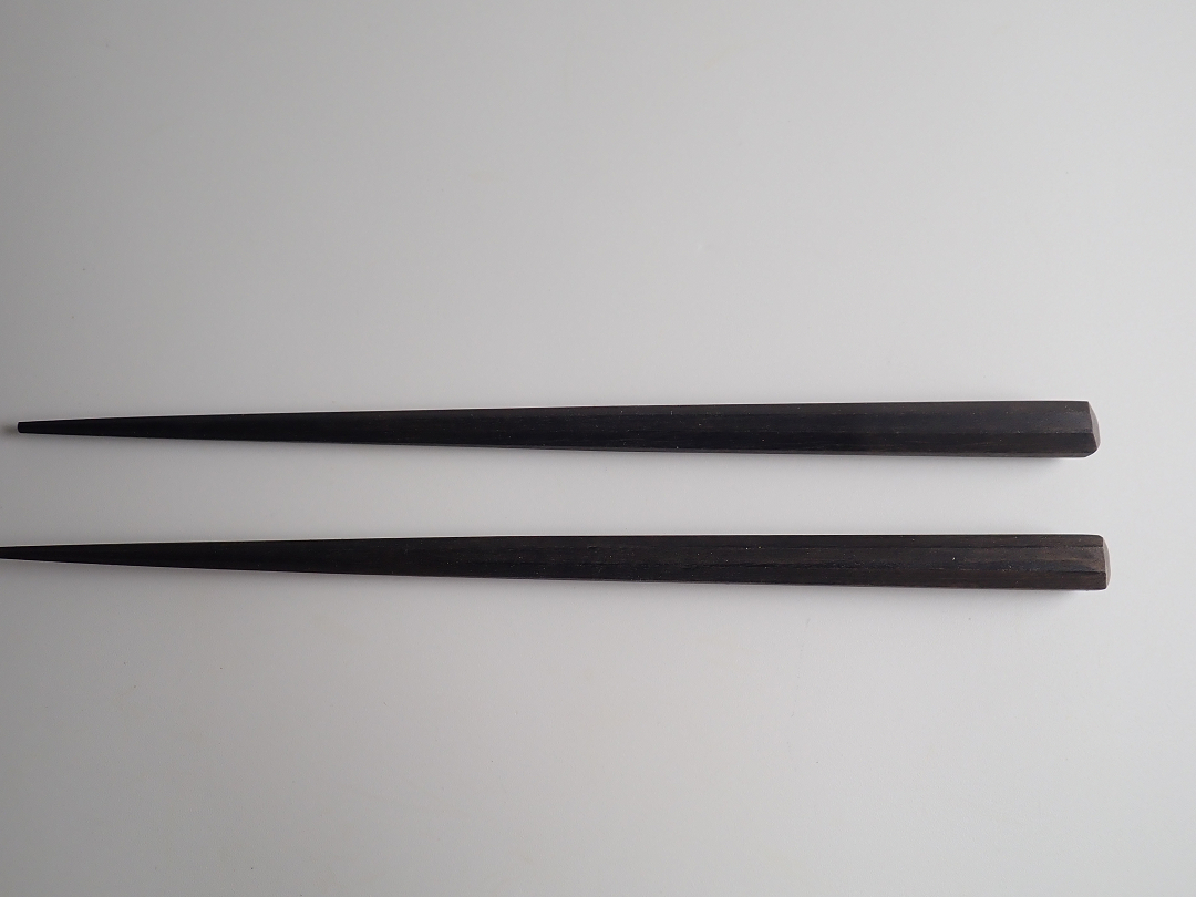 漆芸中島 青黒檀 八角箸です。漆芸中島で購入した八角箸が割れた為に先日漆芸中島様にメンテナンスしていただき短いお箸になったものです。長さは18.5cmです。とても気に入っていたのですが長年長い箸を使ってきましたので出品します。メンテナンス後は未使用です。他社を含め何個か八角箸を所有していますが漆芸中島の八角箸は抜群に食材を掴みやすいです。また短いながらも19.5gとしっかり重さもあり使いやすいです。お弁当用や短いお箸を探していた方、なかなか一流お箸屋さんの短い箸は入手する事も難しいと思いますのでこの機会にいかがでしょうか?送料はクリックポスト185円です。