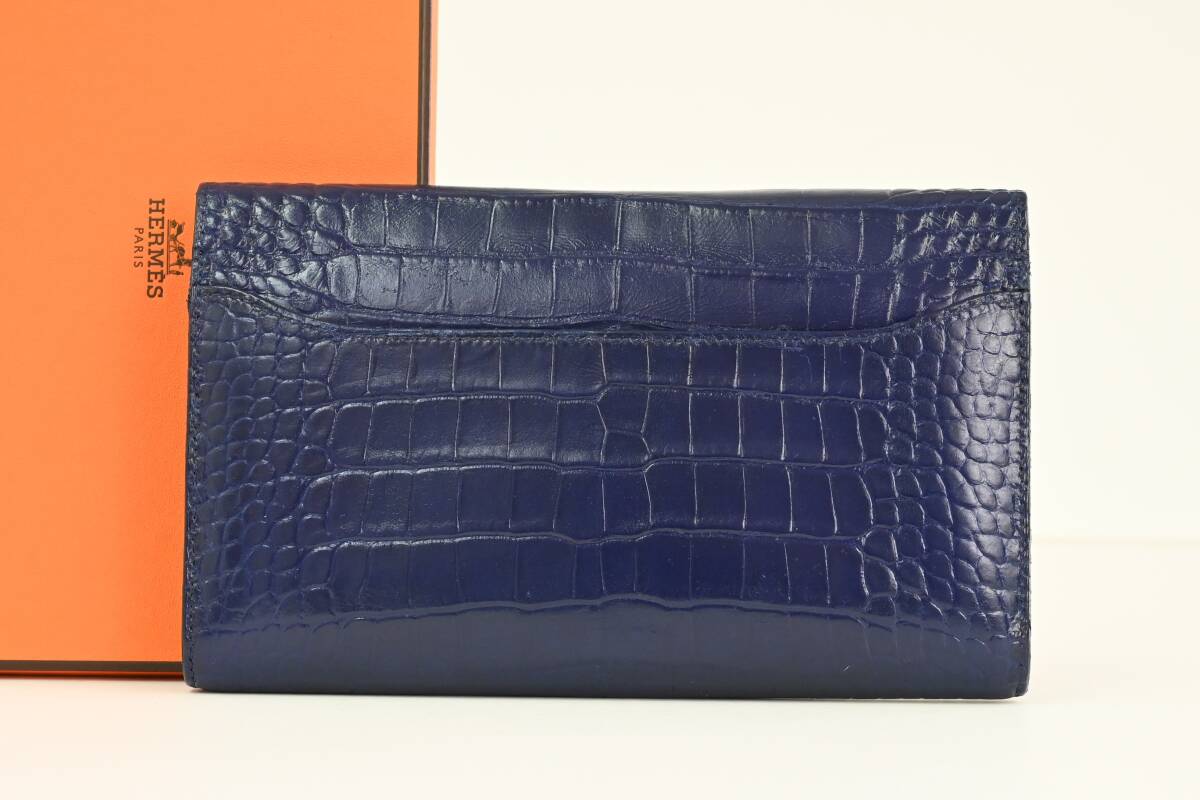 ご覧いただきありがとうございます。以下商品詳細を記載していきますので、よろしくお願いします。 ◆状態 新品同等とは言いませんが比較的綺麗な商品です。多少使用感はありますが、まだまだ使用できます。金具に擦り傷があります。画像にてご判断いただき、納得された方のみご入力お願い致します。 ◆サイズ W20.5cm×H11.5cm×D3cm(多少の誤差はご容赦ください。) ◆仕様 外側オープンポケット×1 カードスロットル×14 小銭入れ×1 マチ無しポケット×2 マチ有りポケット×2 ◆付属品 箱 ◆素材 エキゾチックレザー(クロコダイル) ◆色 ネイビー ゴールド金具 ◆刻印 Y(2020年製造) |